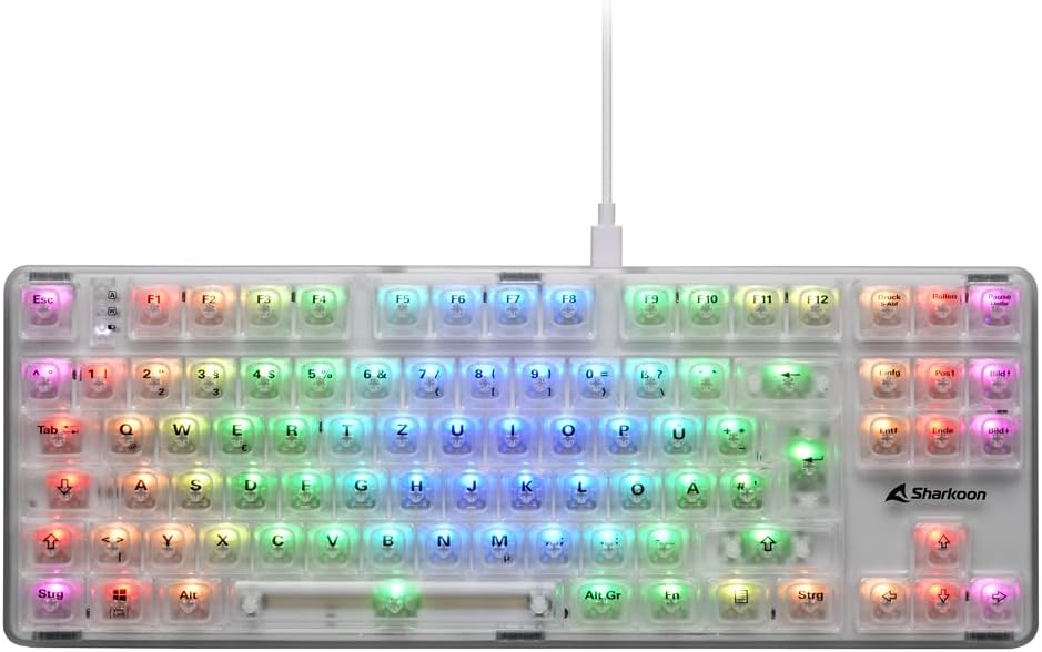Sharkoon Crystal Shark RGB, Weiß – transparente TKL-Tastatur mit Wechsel-Schaltern
