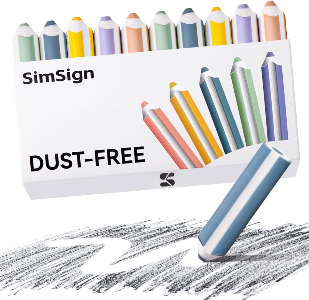 Diese SimSign Radiergummis kommen als bleistiftförmige Radierer daher – gedacht für das schnelle, saubere Korrigieren in Schule, Heften oder Mappen. Der Fokus liegt dabei auf einem „staubfreien“ Radieren und auf einem ergonomischen Dreieck-Design, das sich laut Beschreibung gut greifen lässt. Im Set bekommst du 10 Stück in 5 Farben, also mehrere Radierer, die man gut aufteilen kann (z. B. im Klassenraum, im Schüler-Set oder fürs eigene Materialpaket).