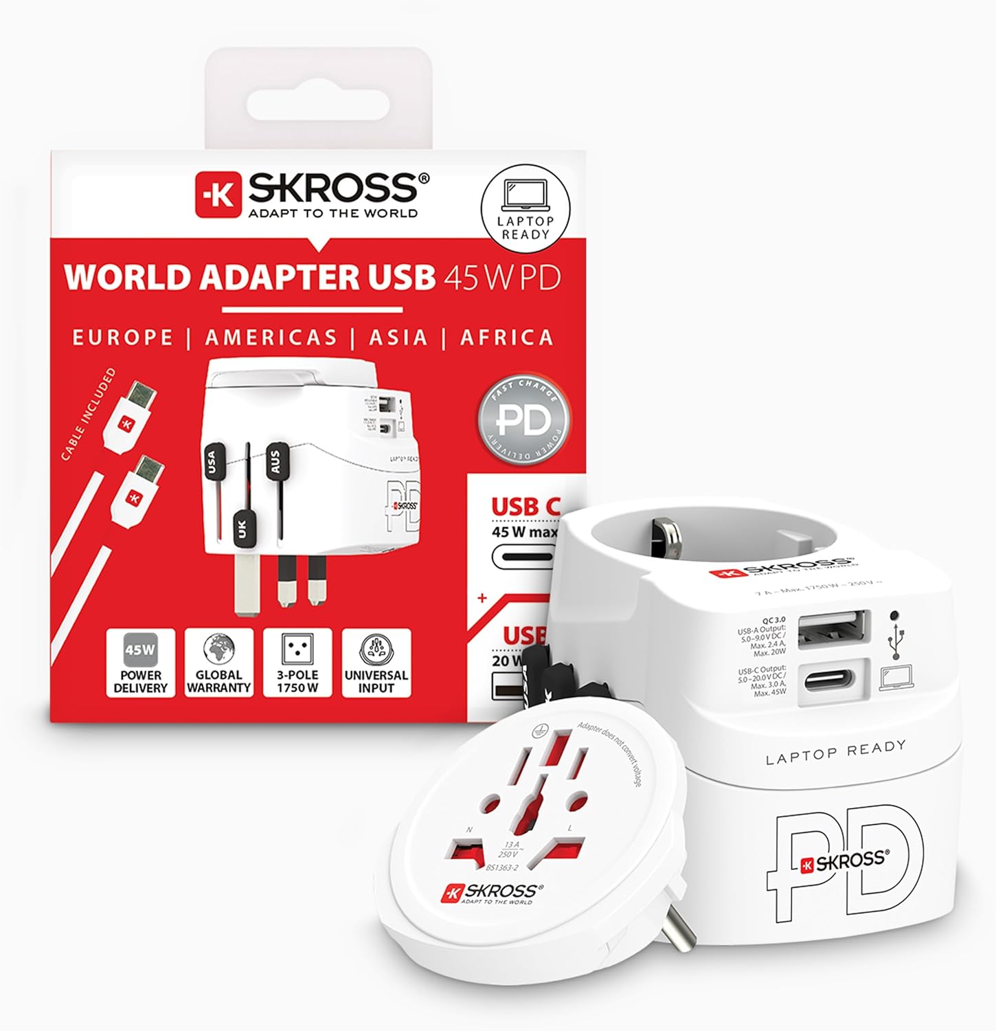 SKROSS PRO Light USB universeller Reiseadapter mit USB-A & USB-C für USA, UK, Australien und Europa