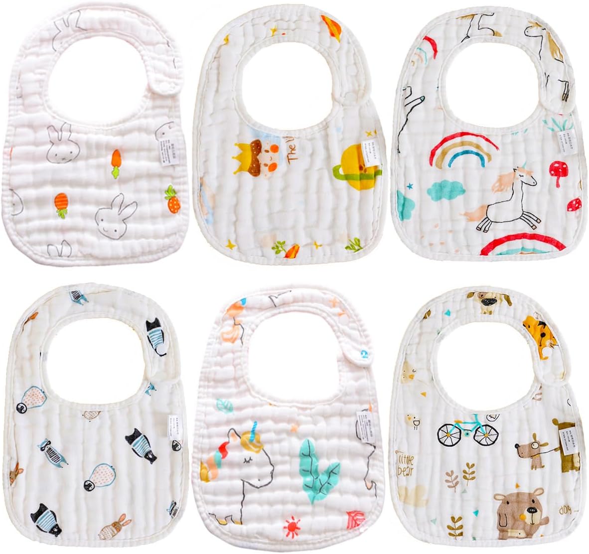 - NISXABEBE 6er-Set Baby-Lätzchen aus Musselin mit verstellbaren Druckknöpfen – für Junge und Mädchen