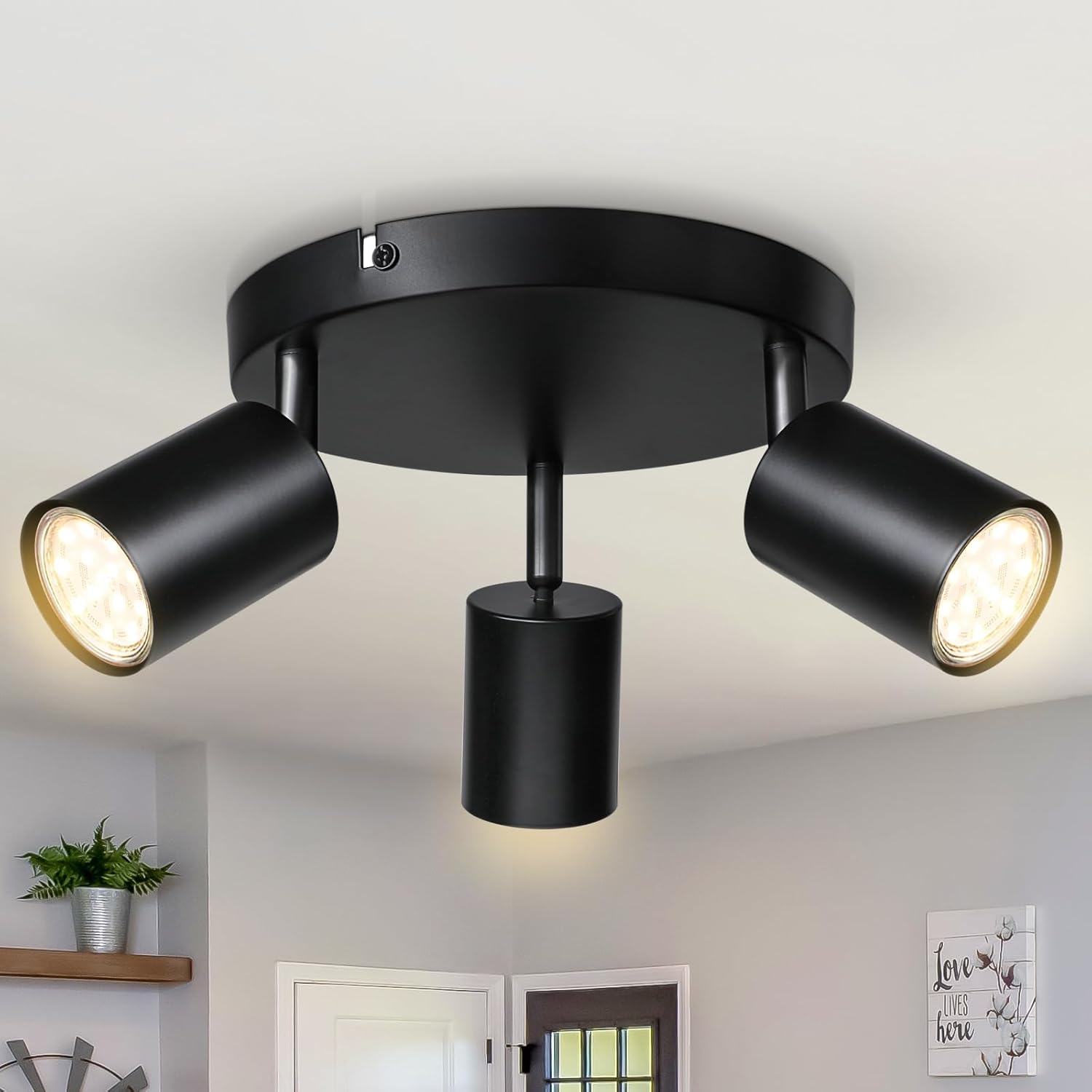 Drehen und Neigen ist bei Strahlern oft der Punkt, an dem es „funktioniert“ oder „nervt“. Hier wird genau damit geworben: Die drei Spots sind alle drehbar, zusätzlich lässt sich jeder Strahler um 90° neigen und um 320° drehen. So bekommst du einen ordentlichen Spielraum, um Lichtkegel auszurichten – selbst wenn die Montageposition nicht perfekt zu deinem gewünschten Lichtbild passt.