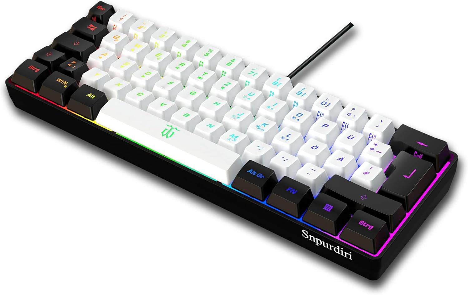 Snpurdiri 60% Percent Gaming-Tastatur (schwarz/weiß, deutsches Alphabet, ohne Ziffernblock)