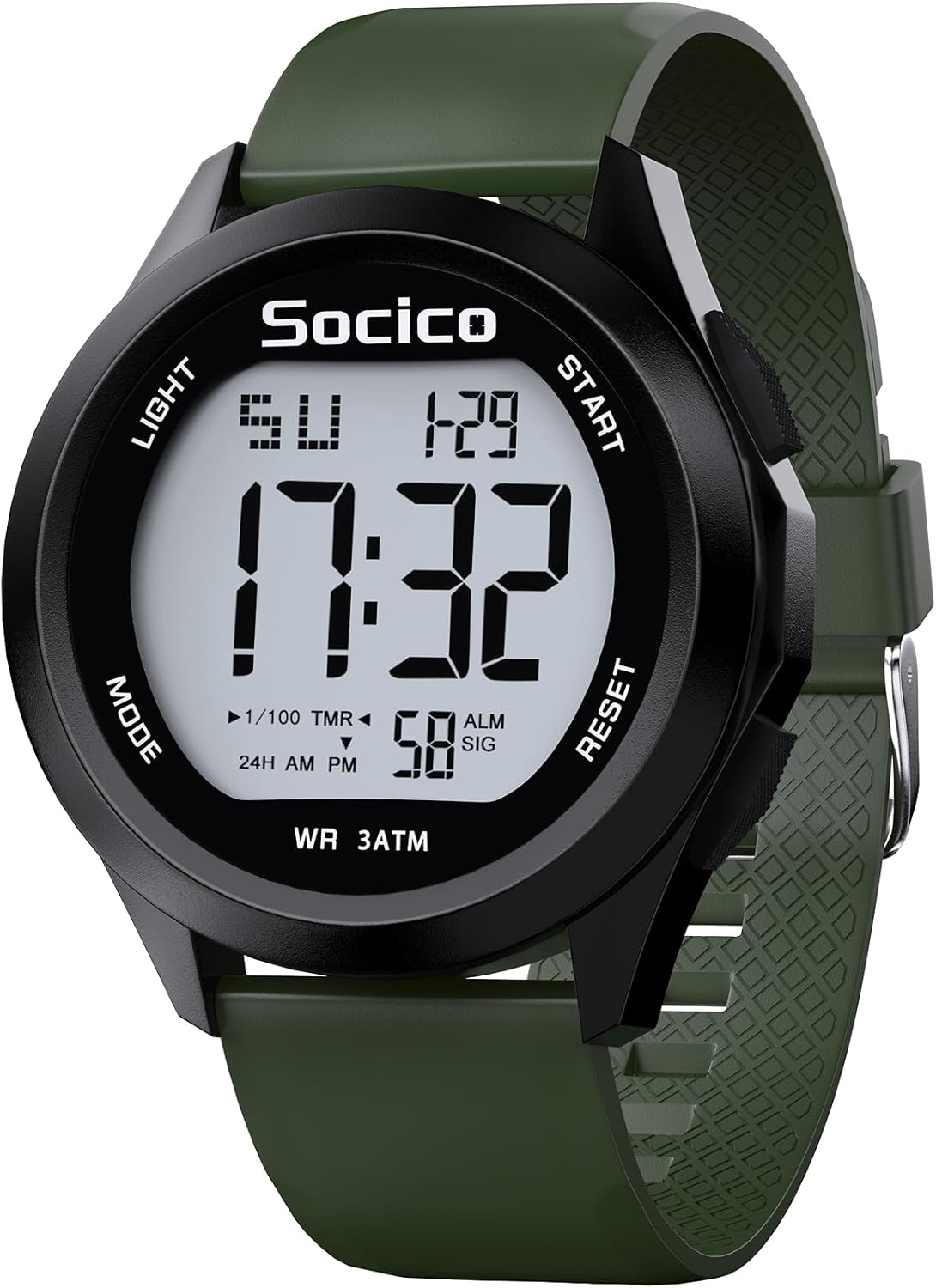 - Name: SOCICO Herren Digitaluhr Sport Wasserdicht Outdoor Großes Gesicht Militär Uhren mit Stoppuhr Hintergrund Beleuchtung Alarm Datum Anzeige