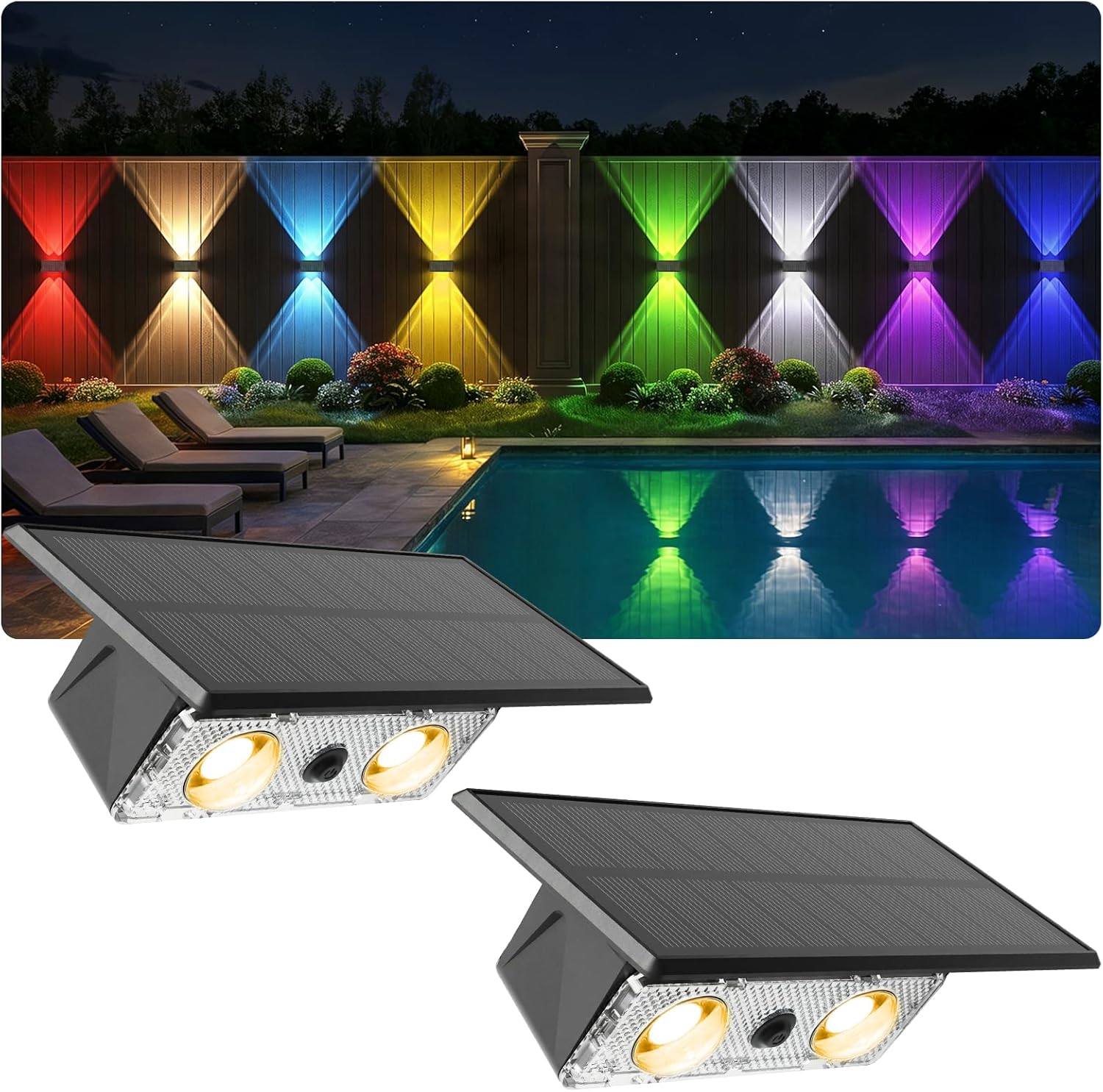 Solar Wandleuchten für außen (2er Set) – Warmweiß + RGB Up-and-Down, IP65, 9 Modi