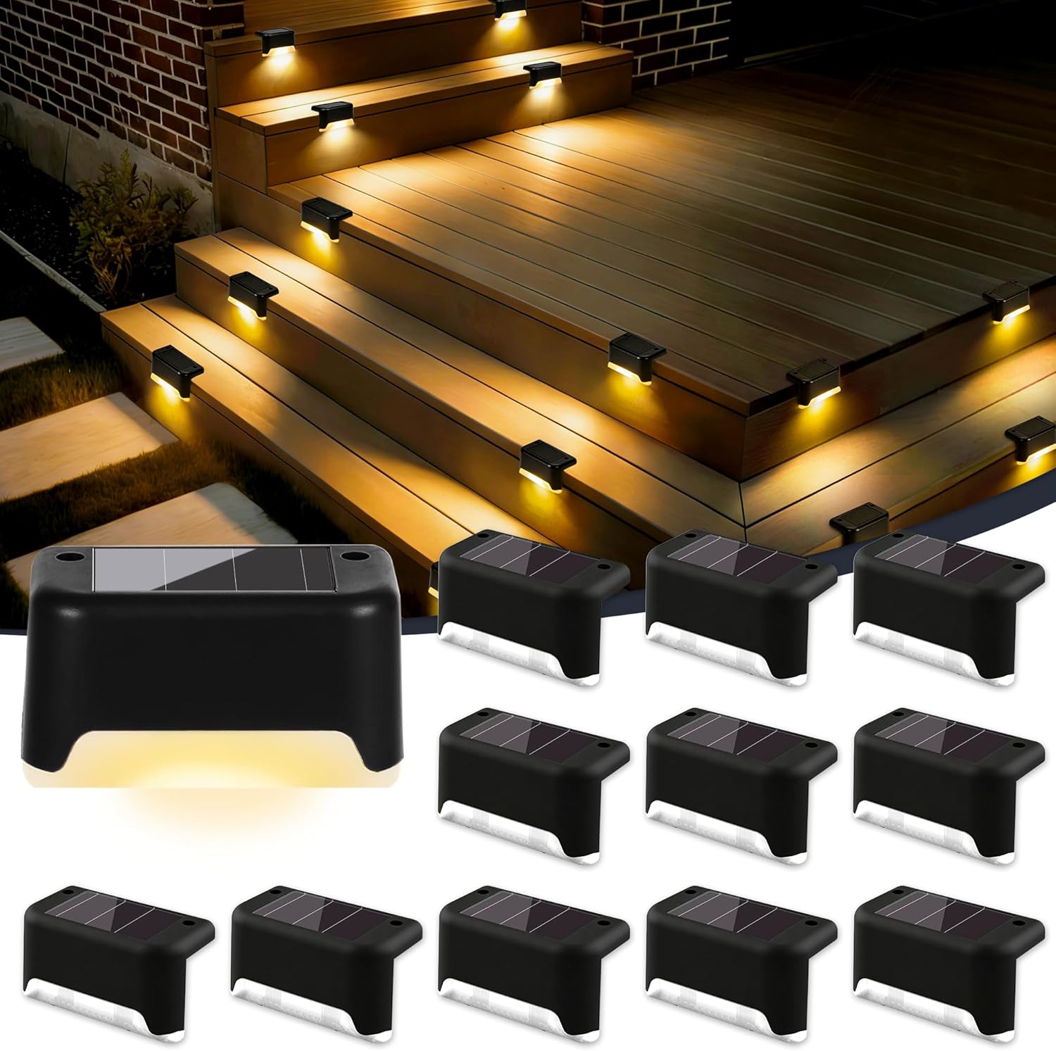 Auf dem Papier wirkt das Set vielseitig – und es lässt sich grundsätzlich genau so einsetzen, wie du es von Treppen- und Stufenlichtern erwartest. Konkret gedacht sind in der Beschreibung zum Beispiel: - Treppen/Stufen, damit man Trittflächen abends besser erkennt - Wege rund ums Grundstück - Zonen am Zaun oder auf dem Deck - Bereiche wie Haustür, Hinterhof, Auffahrt oder Garage als Orientierung