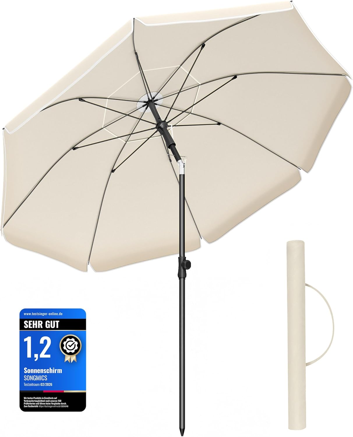 Wenn du vor allem flexiblen Sonnenschutz suchst, bei dem du Höhe und Neigungswinkel nutzen kannst, dann ist der SONGMICS Sonnenschirm über sein UPF 50+ Konzept und die beidseitige 30°-Knickfunktion ein Modell, das sich im Alltag pragmatisch einsetzen lässt. Die Tragetasche und der mobile Ansatz sprechen ebenfalls dafür, wenn du oft zwischen Einsatzorten wechselst.