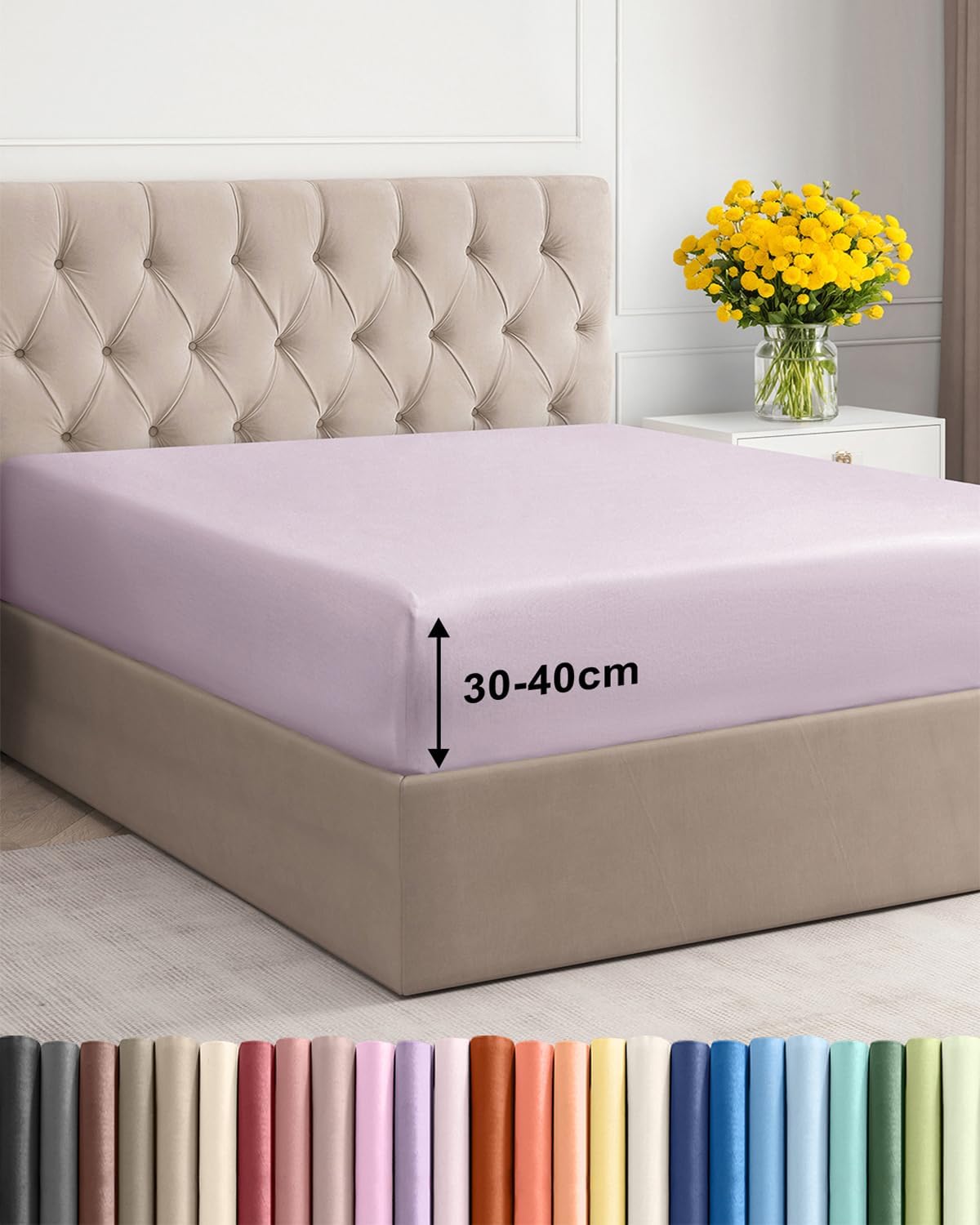 Spannbettlaken 200x200 cm extra tief – Mikrofaser-Polyester bis 40 cm Matratzenhöhe (Lavendel hell) – OEKO-TEX