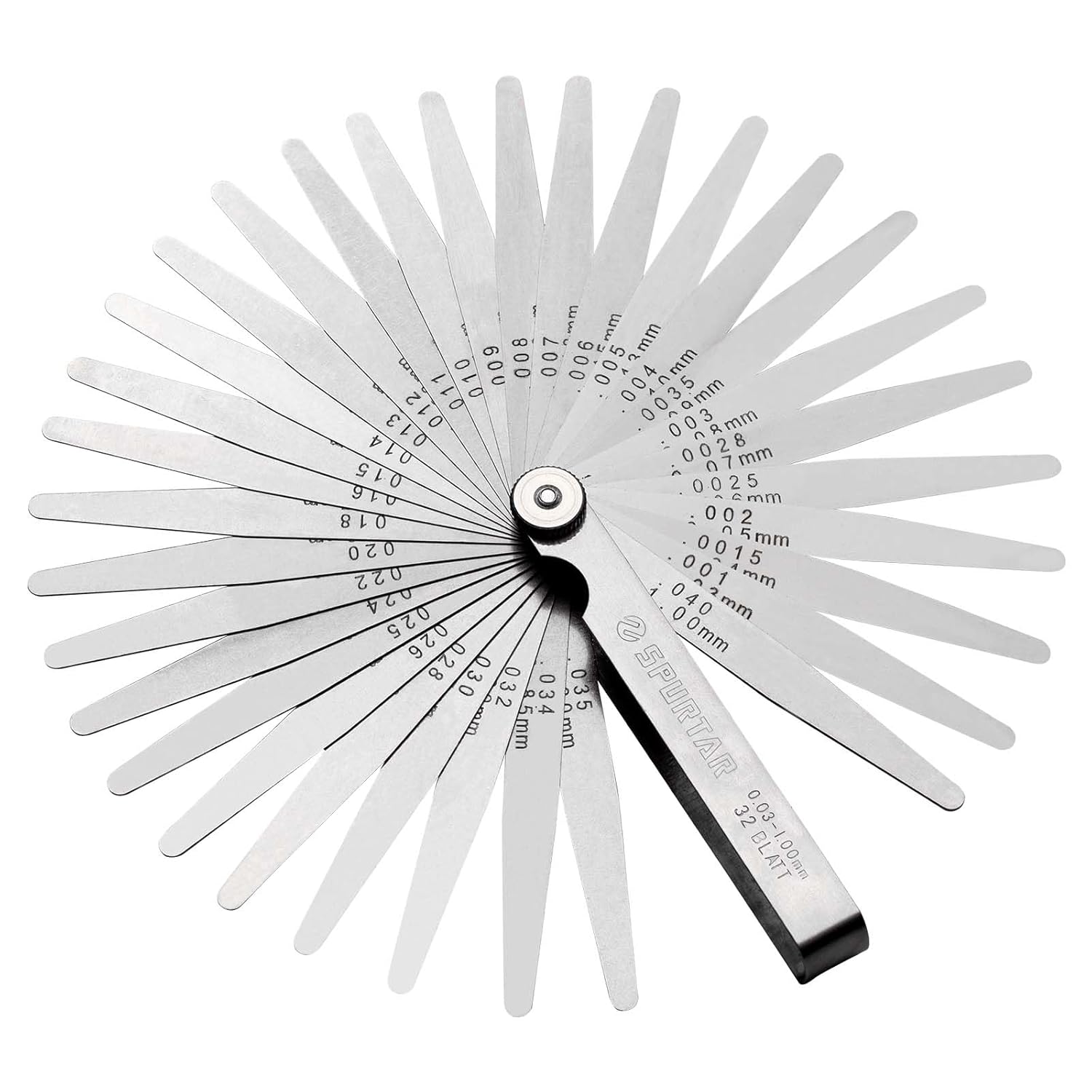 Spurtar 32 Klingen Fühlerlehre-Set aus Edelstahl (0,03–1,00 mm / 0,001–0,04")