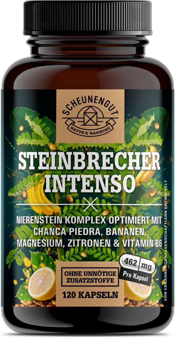 Wenn du eine unkomplizierte 2-Monats-Einnahme mit zwei Kapseln pro Tag möchtest und dich der Ansatz „Chanca Piedra + Banane + Zitrone“ sowie die Ergänzung durch Vitamin B6 und Magnesium anspricht, ist STEINBRECHER INTENSO® Chanca Piedra eine Überlegung wert.