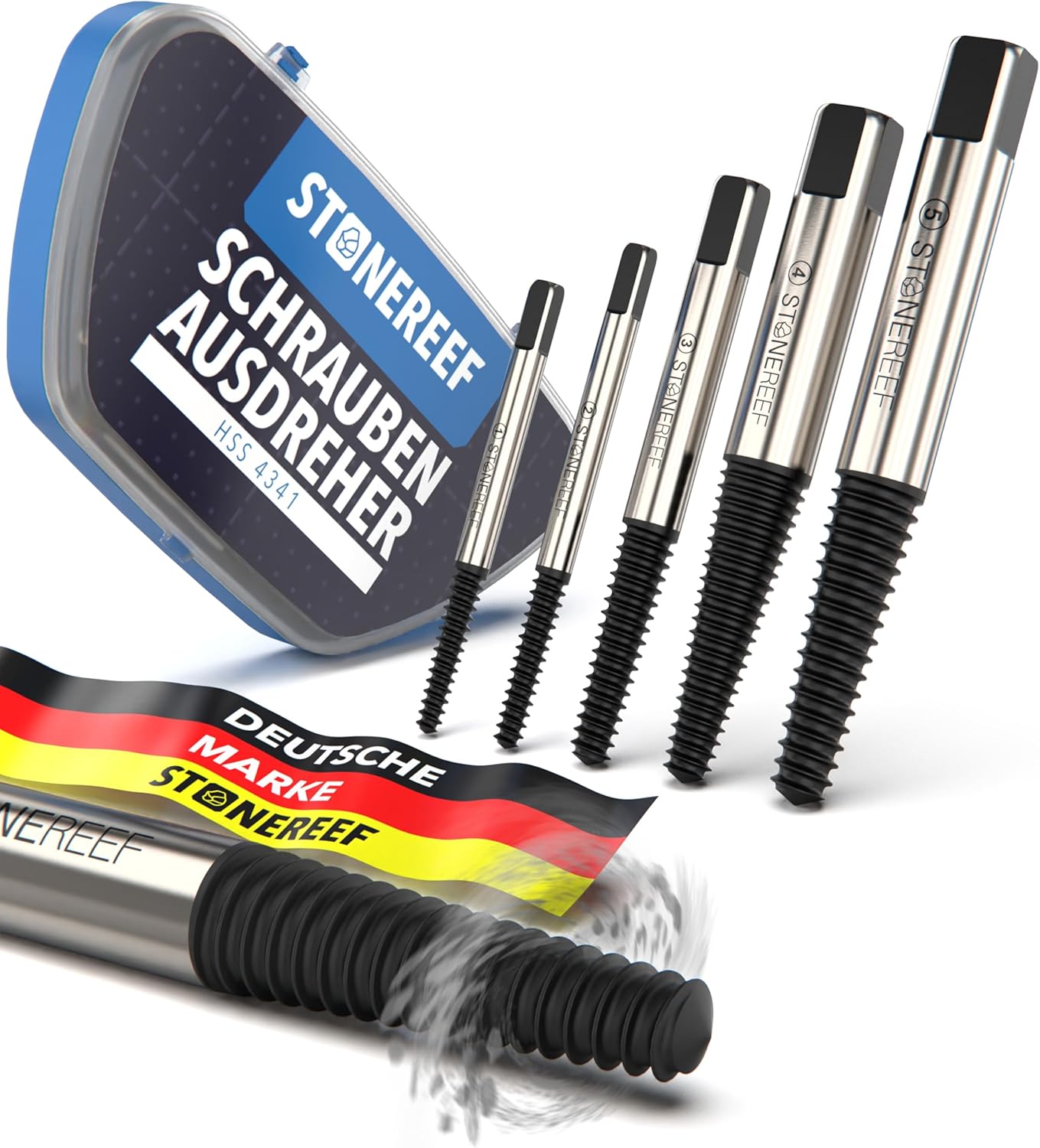 STONE REEF Schraubenausdreher-Set Profi (5-teilig, aus HSS 4341) mit Linksgewinde