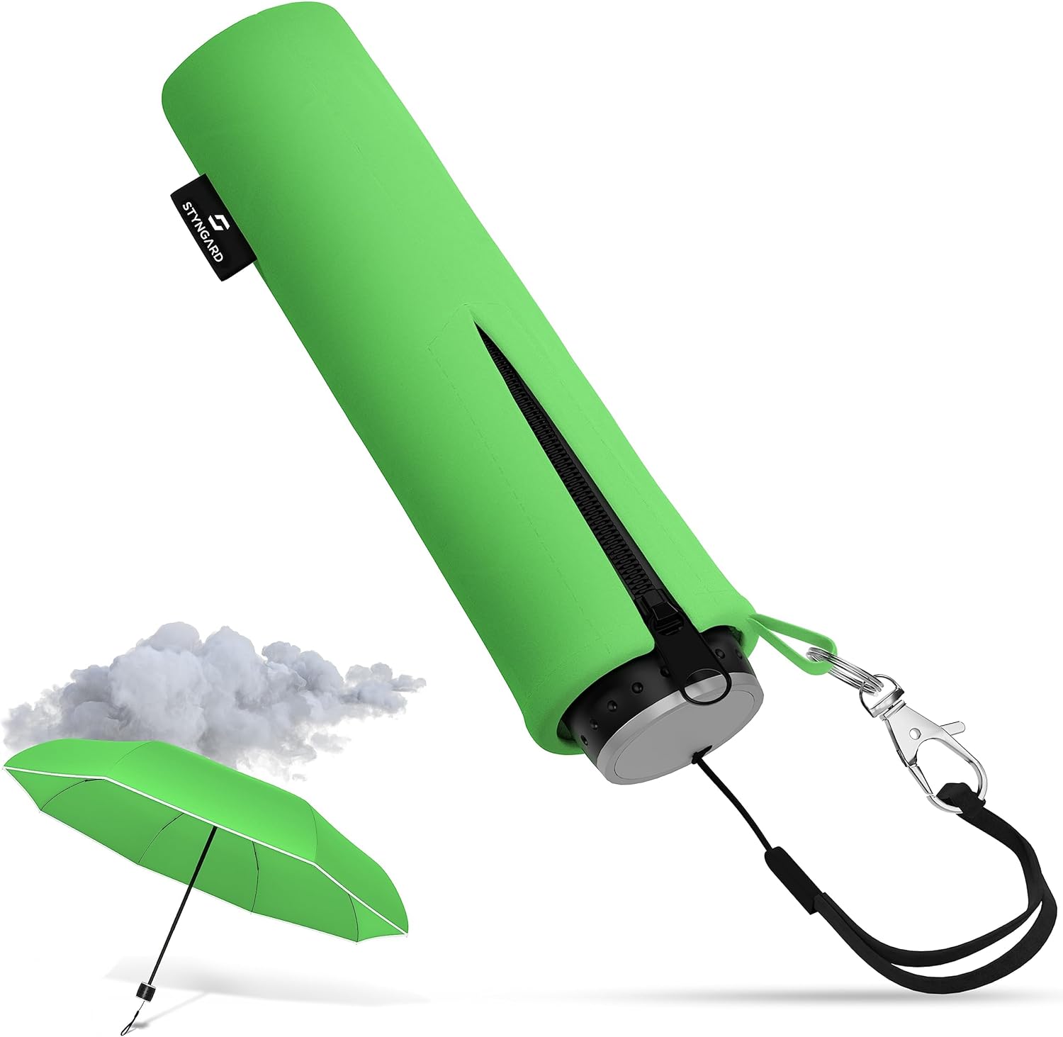 - Aufbewahrung/Transport: Handschlaufe mit Karabiner zur Sicherung der Hülle, Schirmhülle soll nicht verloren gehen
