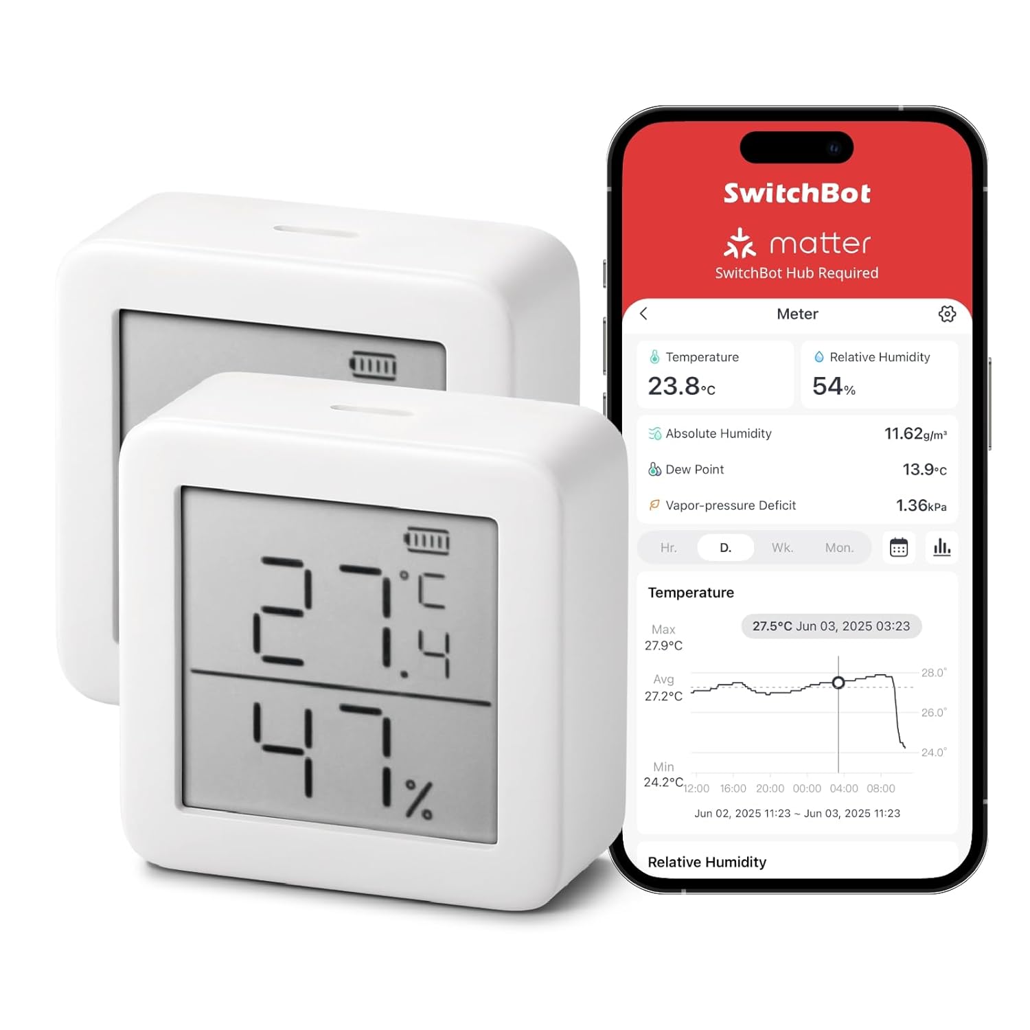 SwitchBot Thermometer Hygrometer Innen (Bluetooth) – Digitales Thermo-/Hygrometer-Sensor-Set mit App
