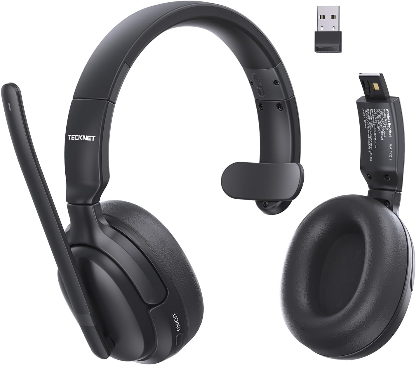 TECKNET Wireless Headset mit Noise Cancelling, Bluetooth 5.4 + 2,4-GHz Dual-Verbindung und Mikrofon (V5.4, Over-Ear, USB-C)