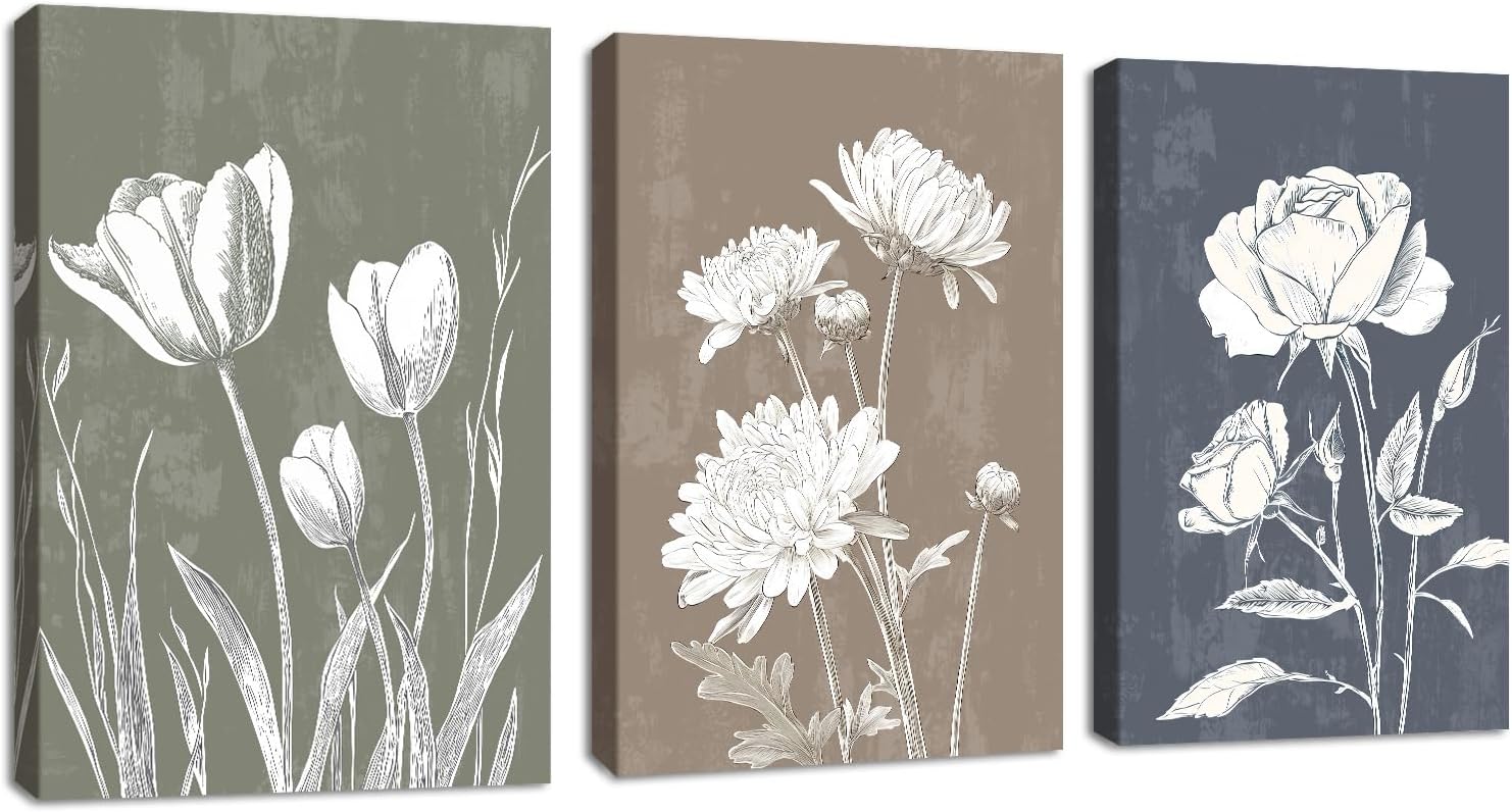 - Name: 3 Pcs Boho Weiß Blumig Botanisch Bilder Set