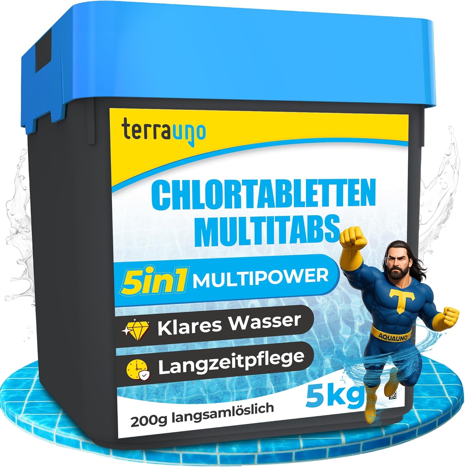 TerraUno Chlortabletten Multitabs 5 in 1 (langsamlösend) für Poolpflege – Chlor, KristallKlar Effekt, 5 kg