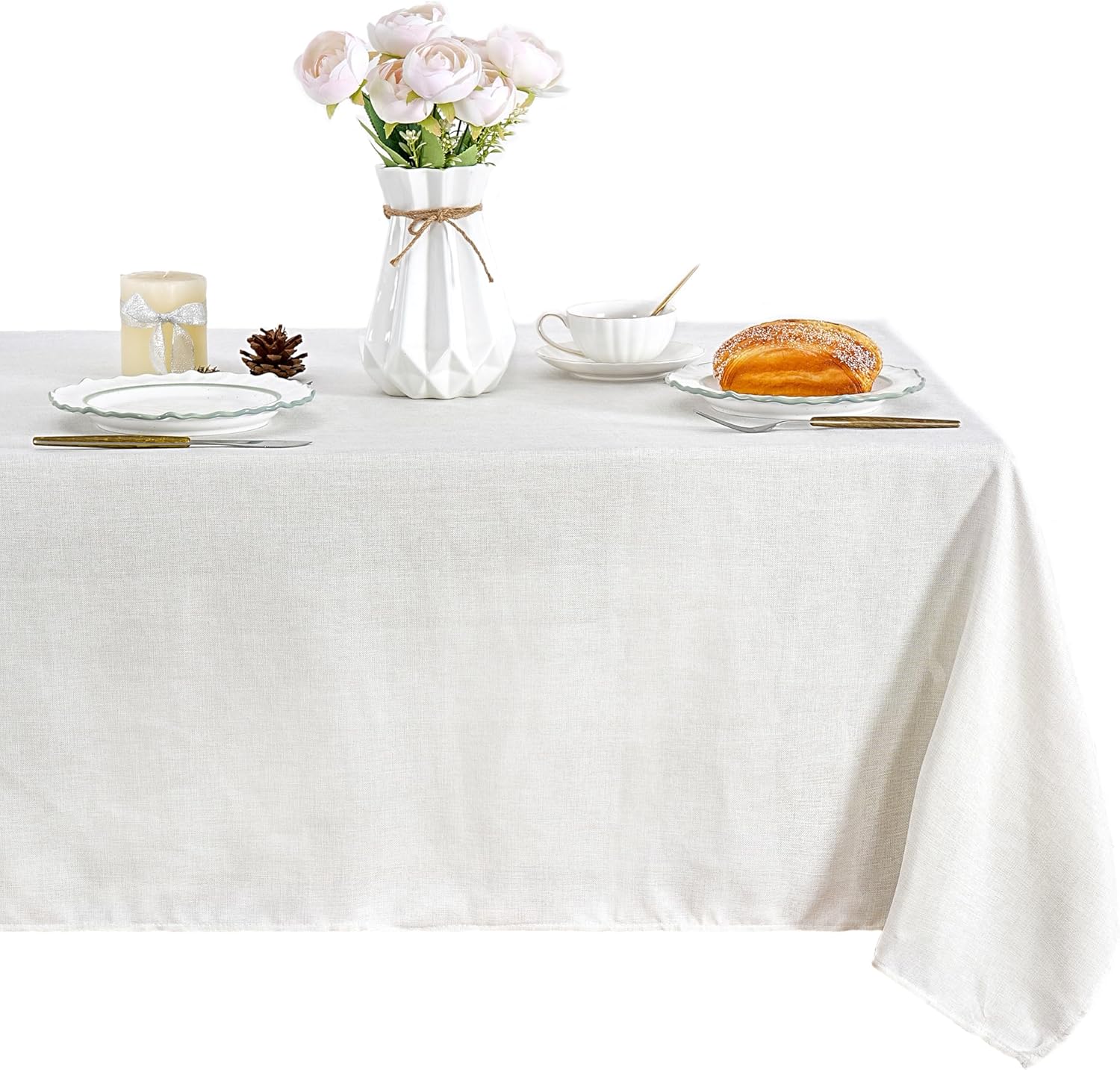 - Homaxy Leinenoptik Tischdecke mit Lotuseffekt, abwaschbar und wasserabweisend – eckig 140 x 180 cm (weiß)