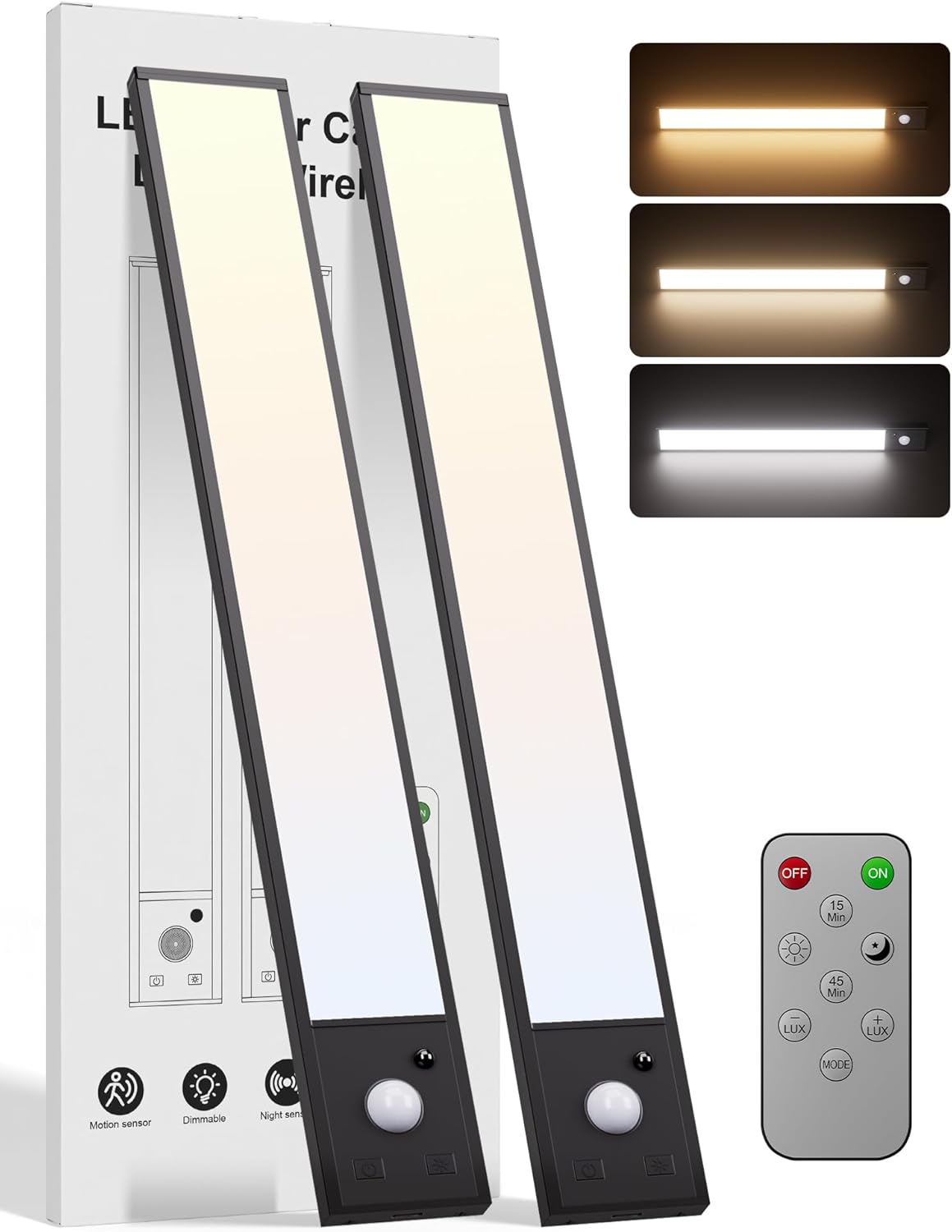 - EZVALO Schrankbeleuchtung LED 25 cm (2 Stück) mit Bewegungsmelder, Akku und 3 Farbmodi