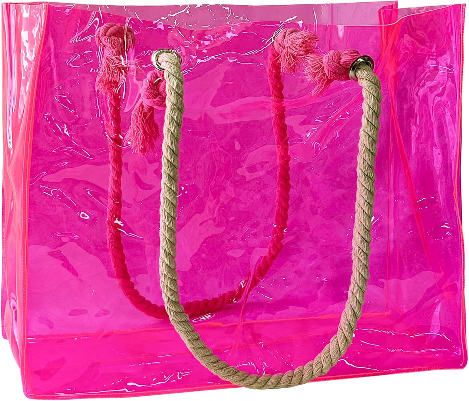 Wenn dir Sichtbarkeit des Inhalts wichtig ist und du eine Tasche willst, die sich leicht reinigen lässt, dann ist die TotePrint transparente Tote Bag ein logischer Kauf: klarem Kunststoff als Hauptmaterial, geflochtene Seilgriffe für den Look und ein wasserdichtes Konzept.