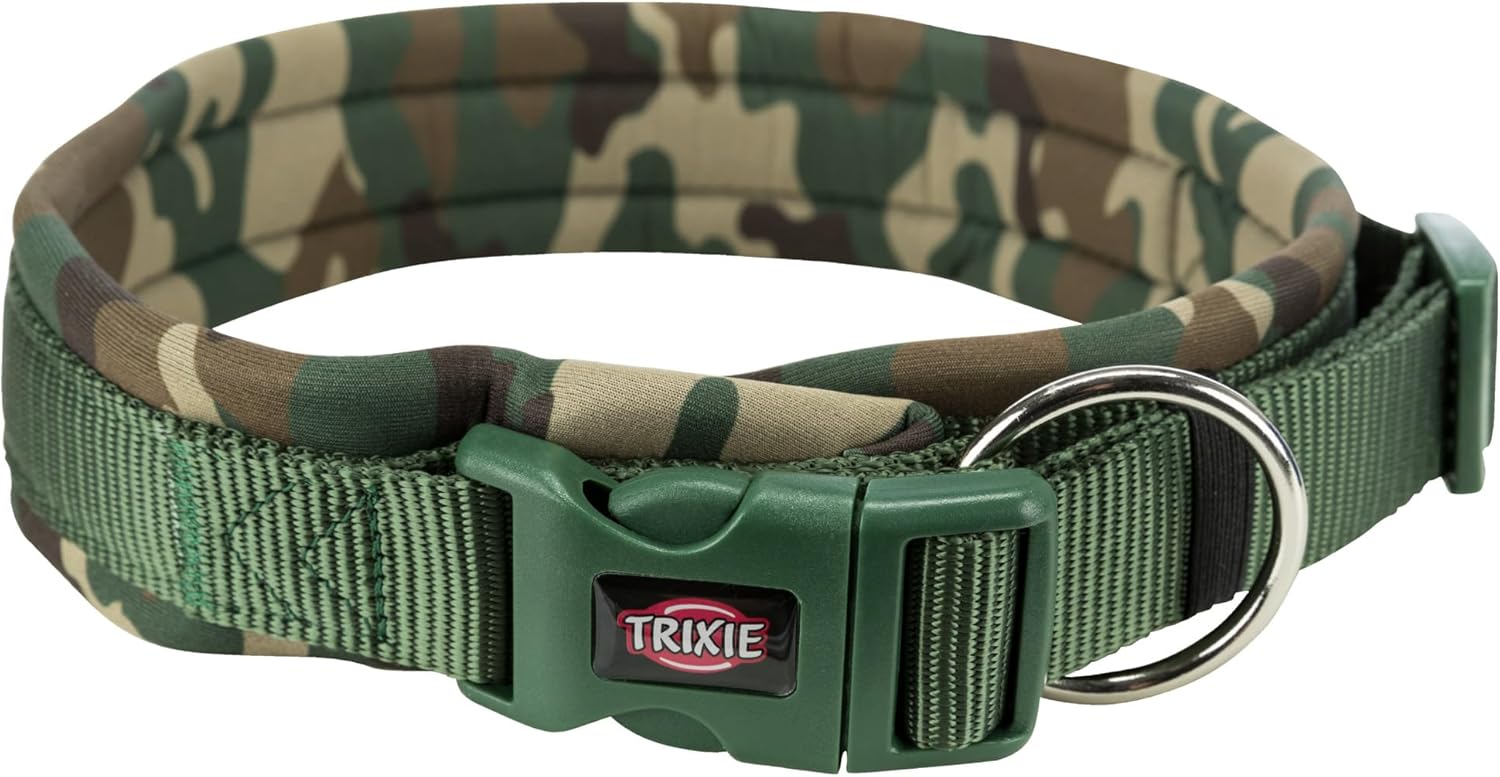 Dieses Halsband von Trixie bietet großen Hunden einen sicheren und komfortablen Halt. Es ist für Halsumfänge von 56 bis 62 cm ausgelegt und besitzt eine Breite von 25 mm, was speziell für kräftige Vierbeiner geeignet ist. Der strapazierfähige Gurtbandkern sorgt dafür, dass das Band trotz regelmäßiger Belastung stabil bleibt, ohne abzurutschen. Für zusätzlichen Comfort sorgt die neoprenpolsterte Innenseite, die Reibung reduziert und das Tragegefühl auch bei längeren Spaziergängen angenehm macht. Der Halsteil lässt sich stufenlos verstellen, sodass du ihn exakt an die individuelle Halsgröße deines Hundes anpassen kannst. Das Camouflage-Design verleiht dem Halsband eine robuste Optik, die zu großen Rassen wie Schäferhunden oder Bernhardinern passt. Eine einfache und zuverlässige Verschlusslösung rundet das Produkt ab und erleichtert das Anlegen im Alltag. Insgesamt verbindet dieses Halsband Robustheit mit praktischer Alltagstauglichkeit und bleibt trotz Feuchtigkeit formstabil.