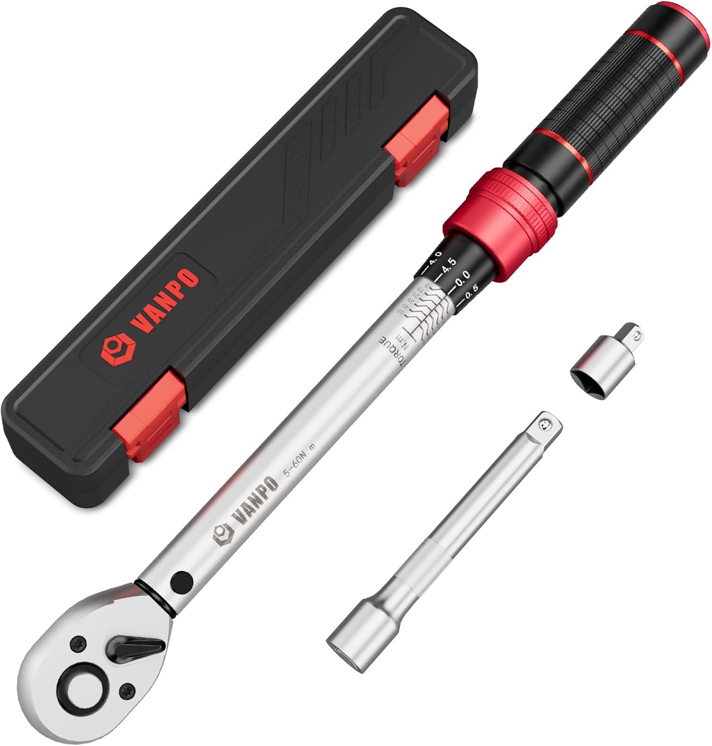 VANPO Drehmomentschlüssel Set 3/8 Zoll (5–60 Nm) für Fahrrad, Motorrad & Zündkerzenwechsel
