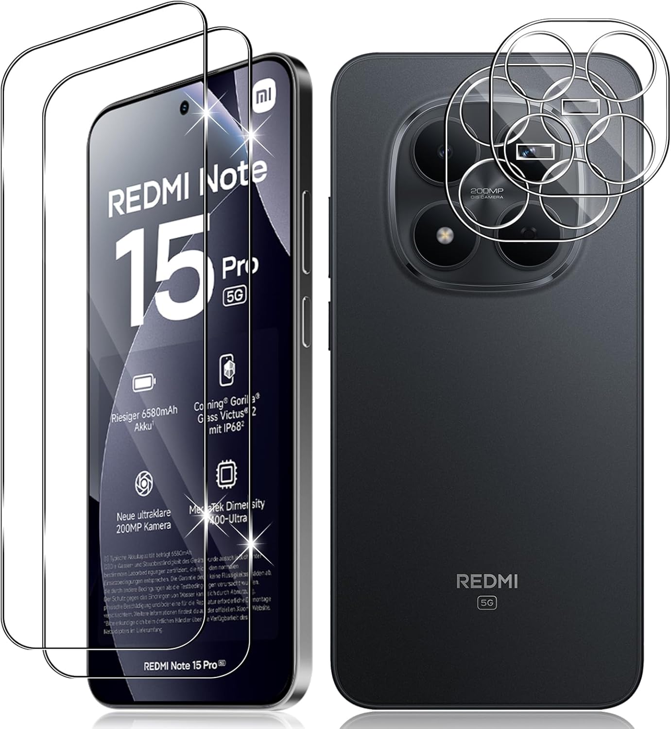 Vanrain Schutzfolie fürs Panzerglas für Xiaomi Redmi Note 15 Pro 5G – 2+2 Stück Schutzglas & Kameraschutz