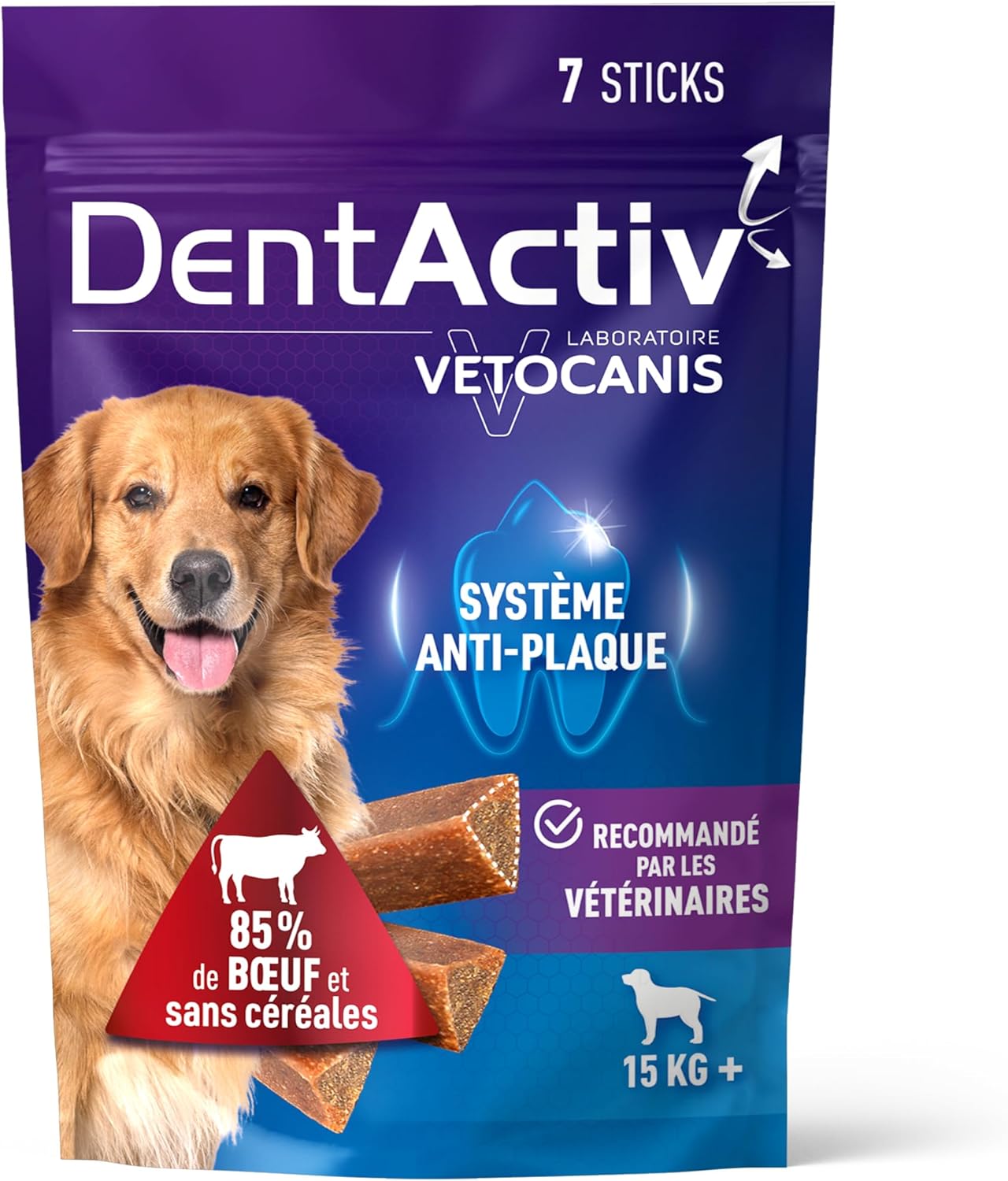 Vetocanis Dentactiv Zahnstick ist eine Dental-Leckerei in Stick-Form für Hunde. Die Idee dahinter: Beim Kauen werden Zähne und Zwischenräume „mitgearbeitet“, während dein Hund gleichzeitig eine fleischige Belohnung bekommt. Besonders adressiert ist das Produkt laut Beschreibung große Hunde (ab 15 kg), also eher nicht die Zielgruppe für Mini- oder sehr kleine Rassen.