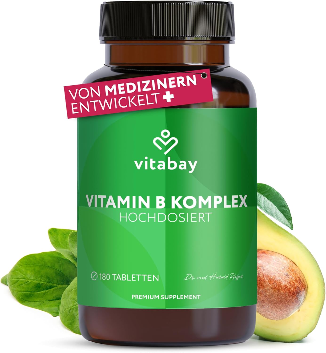 vitabay Vitamin B Komplex hochdosiert – 180 Tabletten mit allen 8 B-Vitaminen, vegan & laborgeprüft