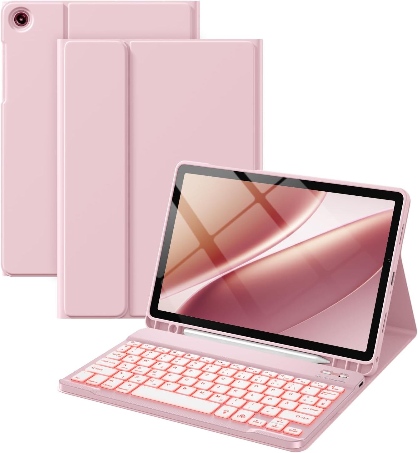 Vobafe Hülle mit Tastatur für Samsung Galaxy Tab A11+ Plus (11 Zoll, 2025) & Tab A9+ Plus (11 Zoll, 2023) – QWERTZ, beleuchtet, abnehmbar, Rosa