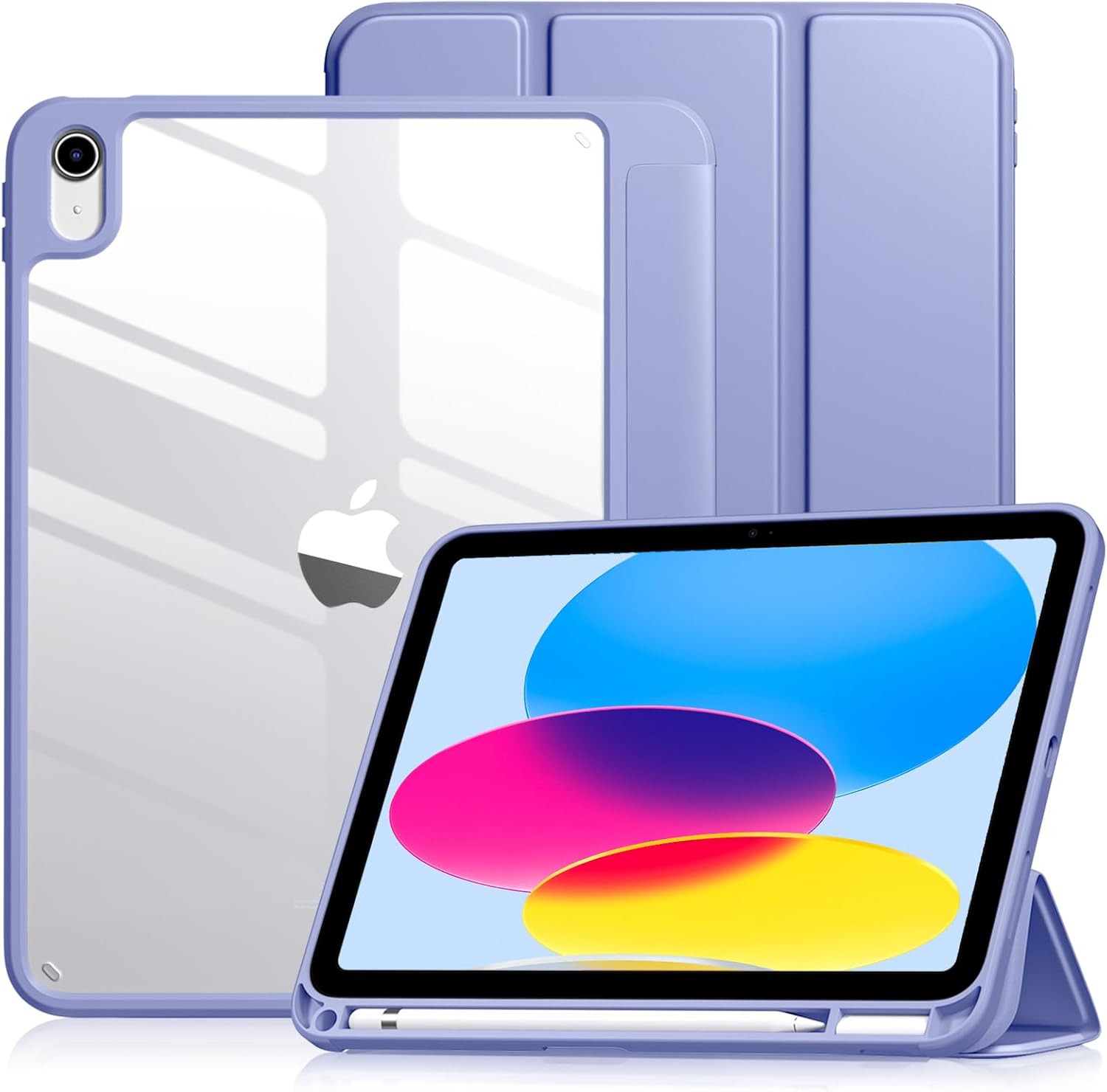 Vobafe Schutzhülle für iPad A16 (11. Generation 2025) & iPad 10. Generation 10,9" – mit Stifthalter, PC-Transparent, Lavendel