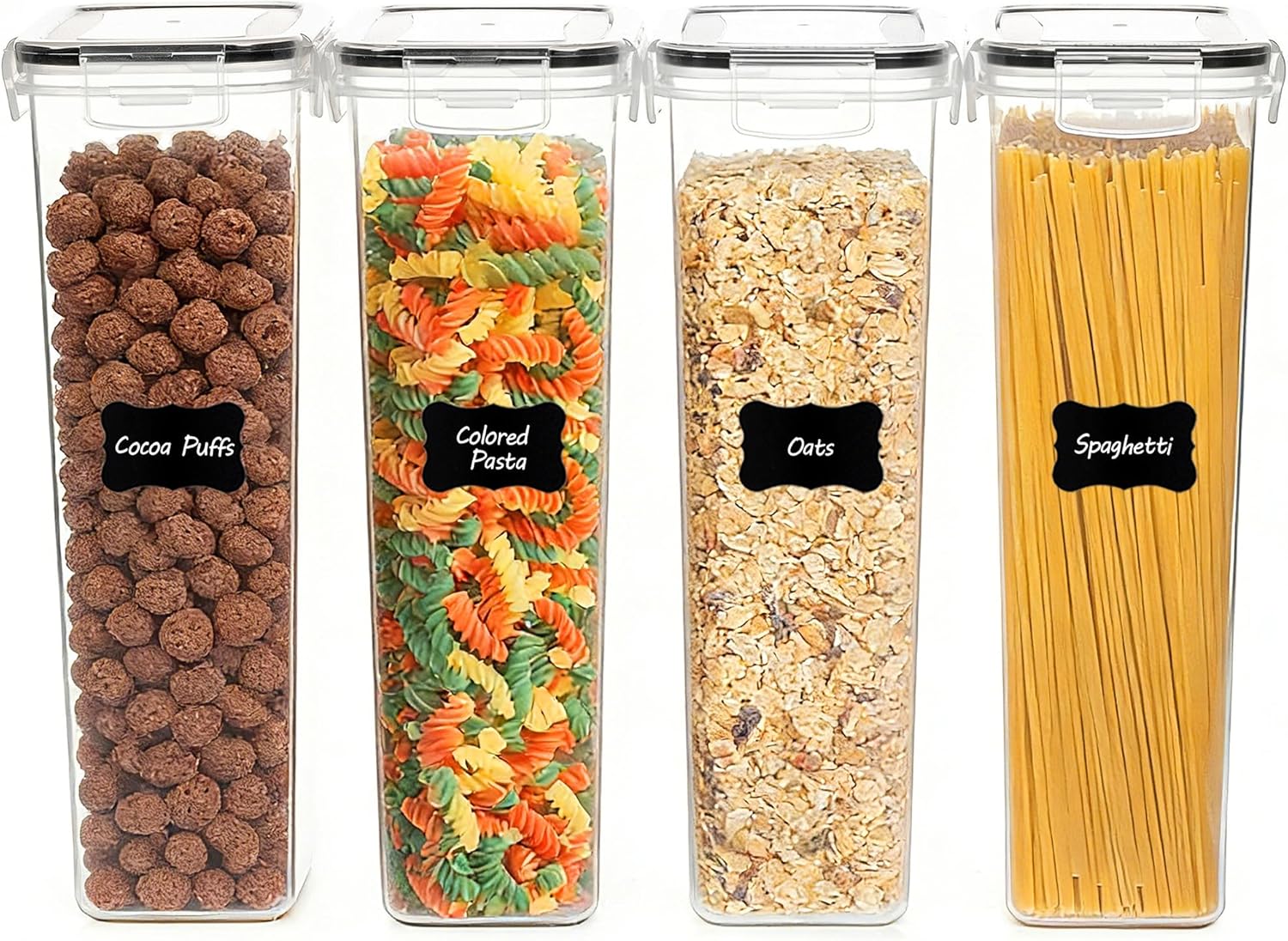 Das Set besteht aus vier gleich großen Behältern mit je 2,8 Liter Fassungsvermögen, ideal für Müsli, Reis, Mehl oder Snacks. Die Deckel schließen seitlich mit Schnappverschluss und einer Silikondichtung, sodass die Behälter luftdicht bleiben und trockene Lebensmittel länger frisch wirken. Das Material ist lebensmittelecht und BPA-frei, was ein beruhigendes Merkmal für die Lebensmittelaufbewahrung darstellt. Die klaren Wände erlauben schnellen Sichtcheck, was Vorräte und Nachfüllbedarf angeht. Einfache Reinigung ist möglich, da die Behälter spülmaschinenfest sind, wobei Handwäsche schonender bleibt. Zusätzlich liegen 24 wiederverwendbare Etiketten bei, die das Umfüllen und Sortieren erleichtern. 🧂 🥜