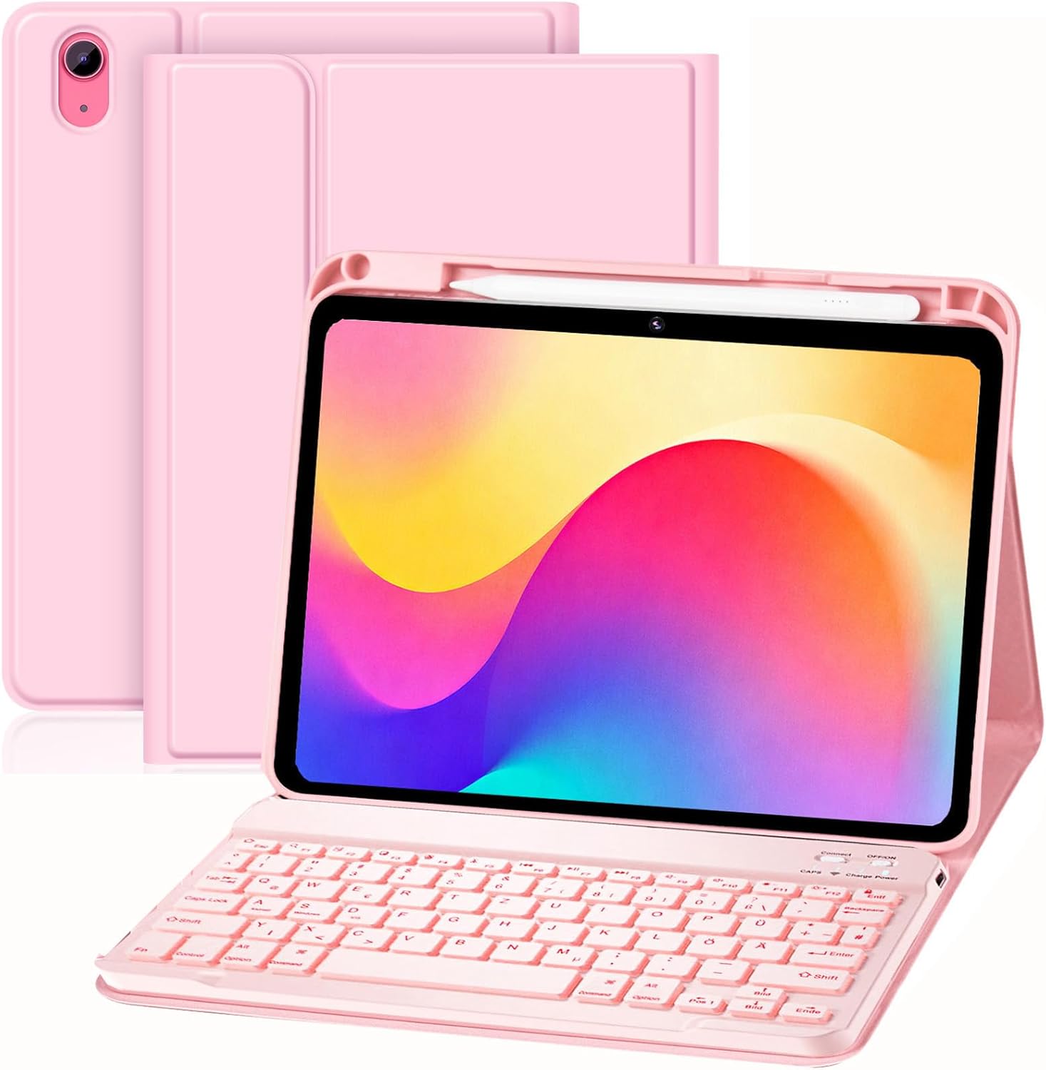 WALWALO Hülle Tastatur für iPad 10./11. Generation (A16) mit QWERTZ, beleuchtet, magnetisch abnehmbar – rosa