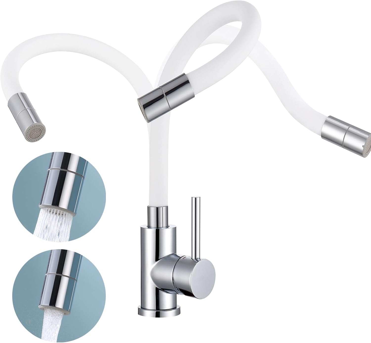 Wasserhahn Küche/Bad Flexibel – Hochdruck Küchenarmatur mit 2 Strahlarten, 360° schwenkbar (Edelstahl, weiß)
