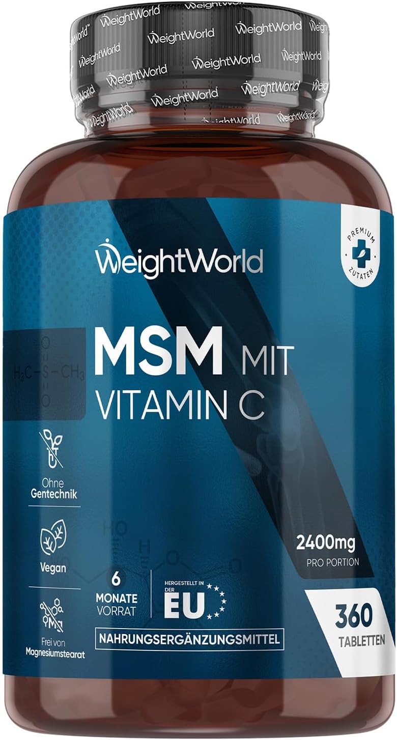 Wenn du eine klare, unkomplizierte MSM- und Vitamin-C-Routine als Tabletten suchst, dann ist dieses WeightWorld-Produkt auf Papier gut durchdacht: 2.400 mg MSM plus 100 mg Vitamin C pro Tagesportion, 360 vegane Tabletten und ein 6-Monate-Vorrat bei 2 Tabletten täglich.
