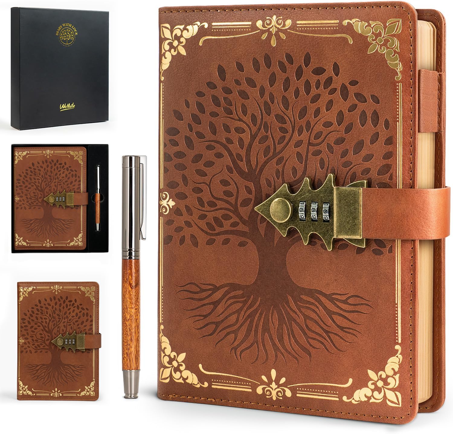 WEMATE verschließbares Tagebuch mit Schloss & Geschenkbox (A5, 260 Seiten, nachfüllbar) – Vintage Lock Journal, braun