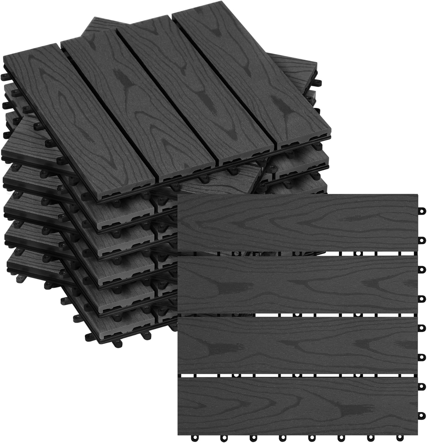 WOLTU WPC Terrassenfliesen Holzoptik mit Klicksystem (30×30 cm) Anthrazit – Set mit 11 Stück für 1 m²