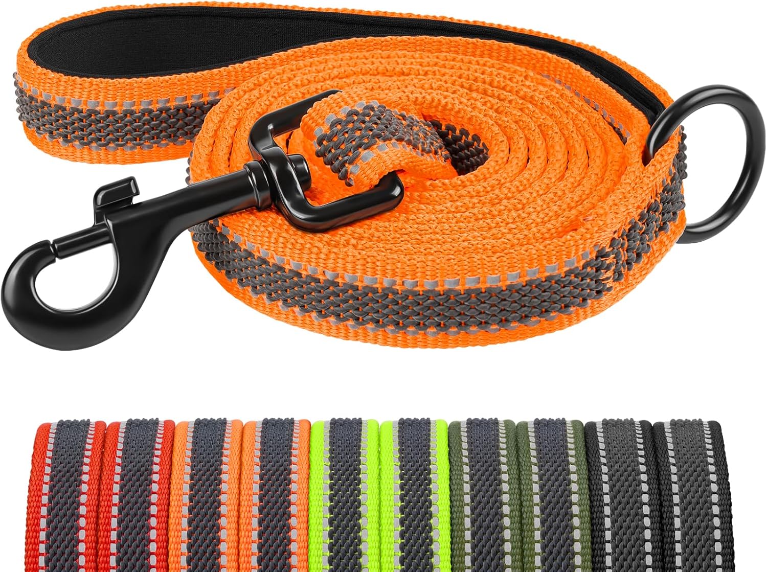 - X XBEN Schleppleine für Hunde (8 mm, 15 m) mit gepolstertem Griff und abschließbarem Karabiner