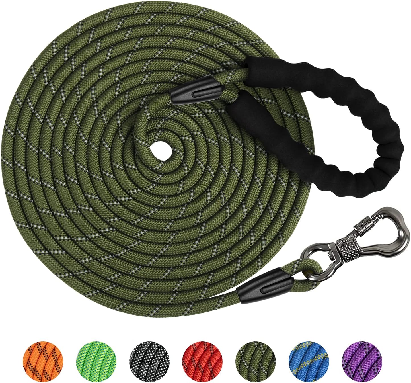 X XBEN Schleppleine für Hunde (8 mm, 15 m) mit gepolstertem Griff und abschließbarem Karabiner