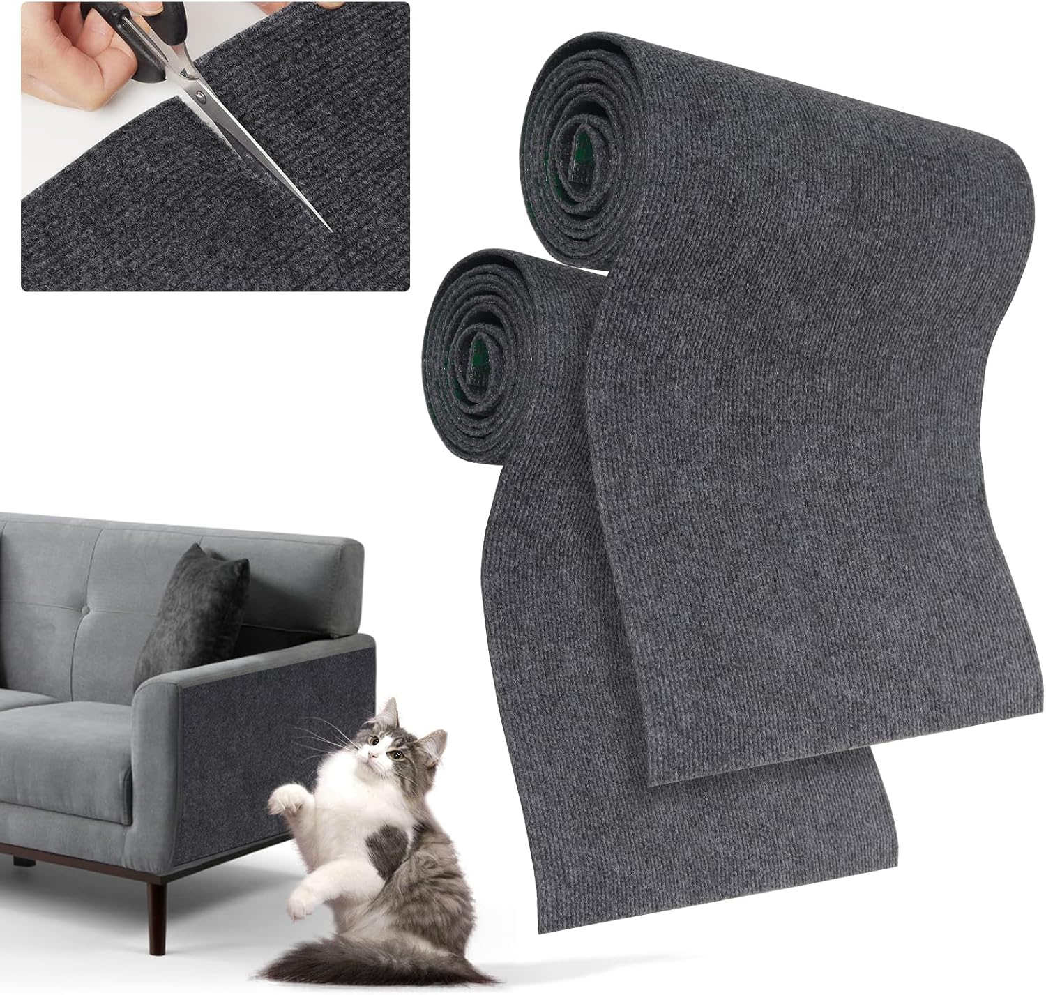 Die Kratzmatte besteht aus Vliesstoff und Polyester und hat eine Dicke von 3 mm. Der Clou ist das selbstklebende Design: Du kannst die Matte individuell auf die gewünschte Größe zuschneiden und an der Stelle befestigen, an der gekratzt wird.