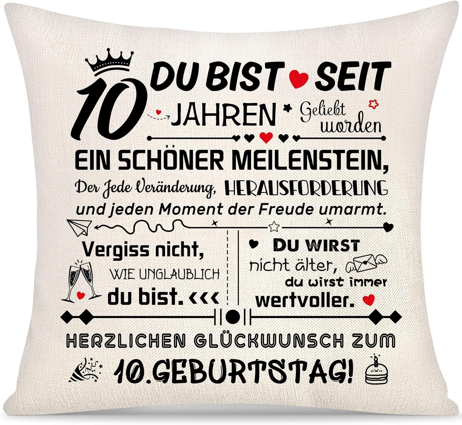 Yoskiasd 10 Jahre Geburtstag Kissenbezug (18 x 18 / 45 x 45 cm) – Geschenk zum 10. Geburtstag