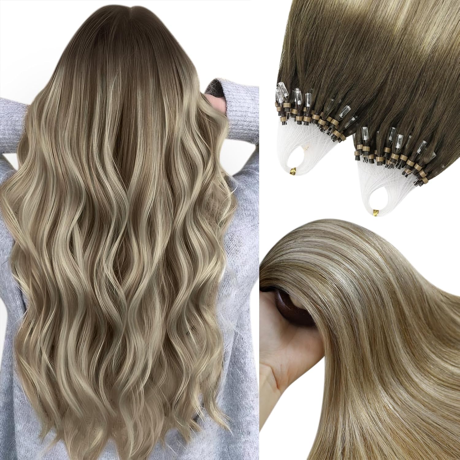 YoungSee Microring Extensions Echthaar, 1 g Balayage (60 cm) – Micro-Loop Haarverlängerungen