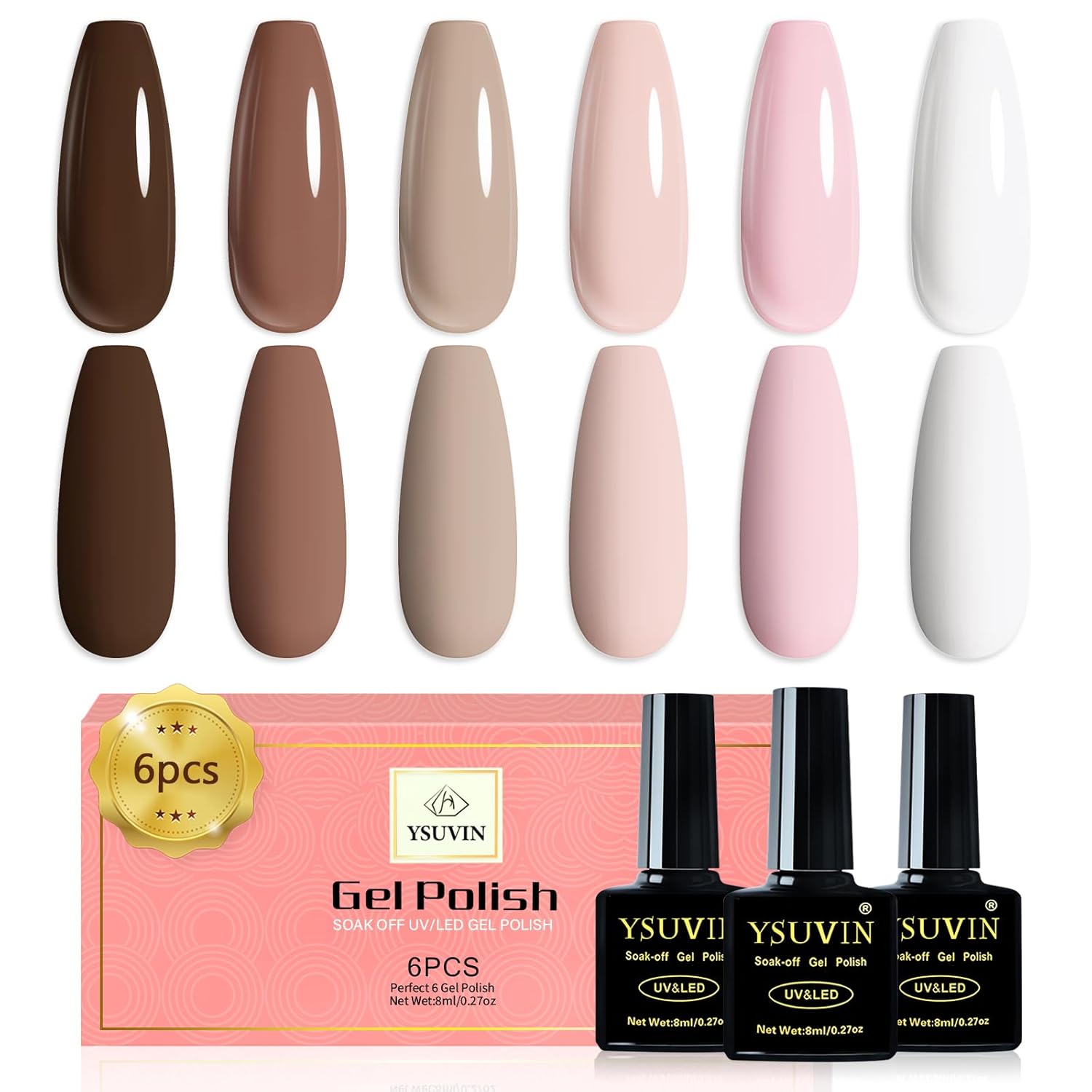 - YSUVIN UV Nagellack Nude Set (6 Stück) – Nude Rosa Gel Nagellack, Soak-Off UV