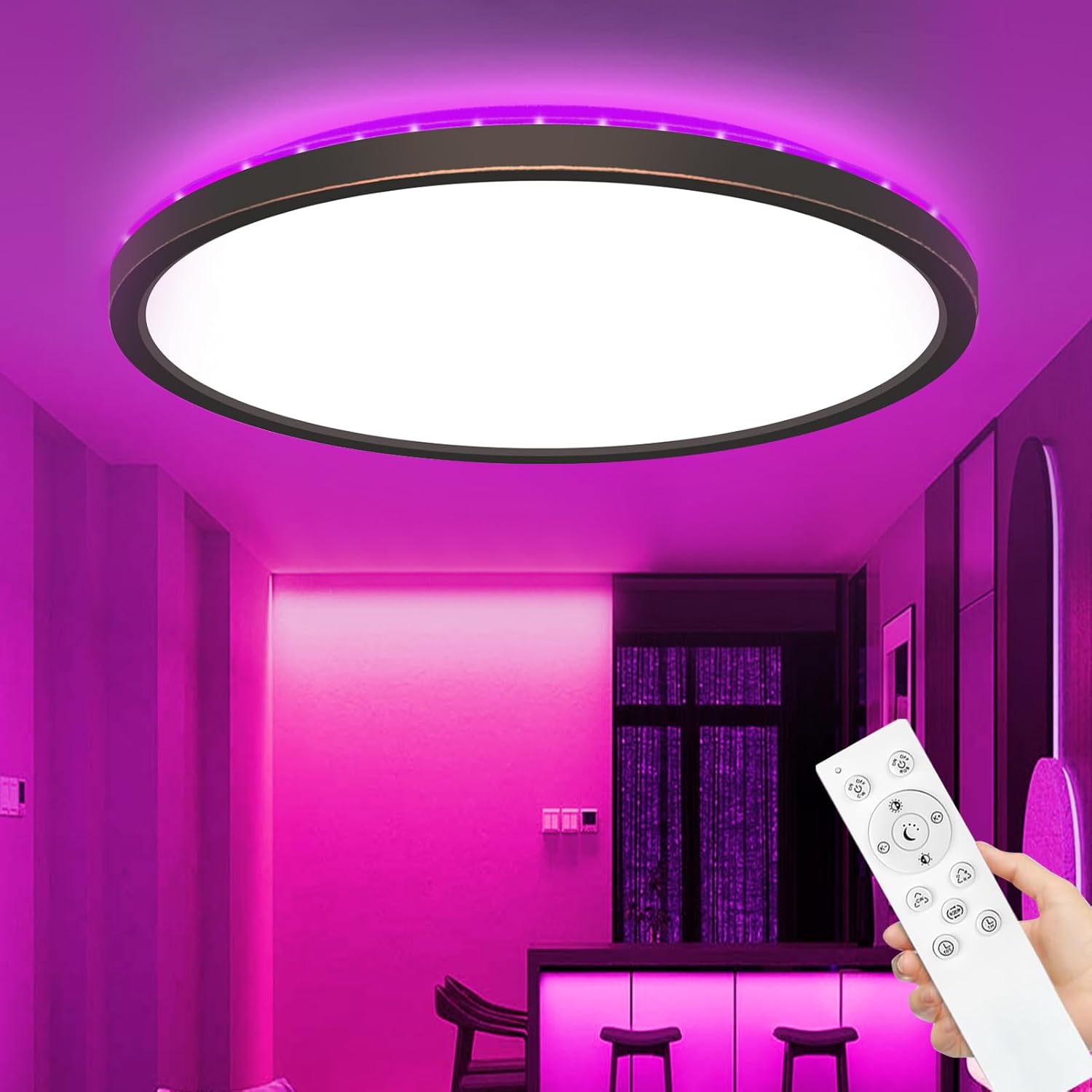 zemty LED Deckenleuchte dimmbar mit RGB-Farbwechsel und Fernbedienung (IP54, 24W, 3200 lm, 30 cm) für Bad & mehr