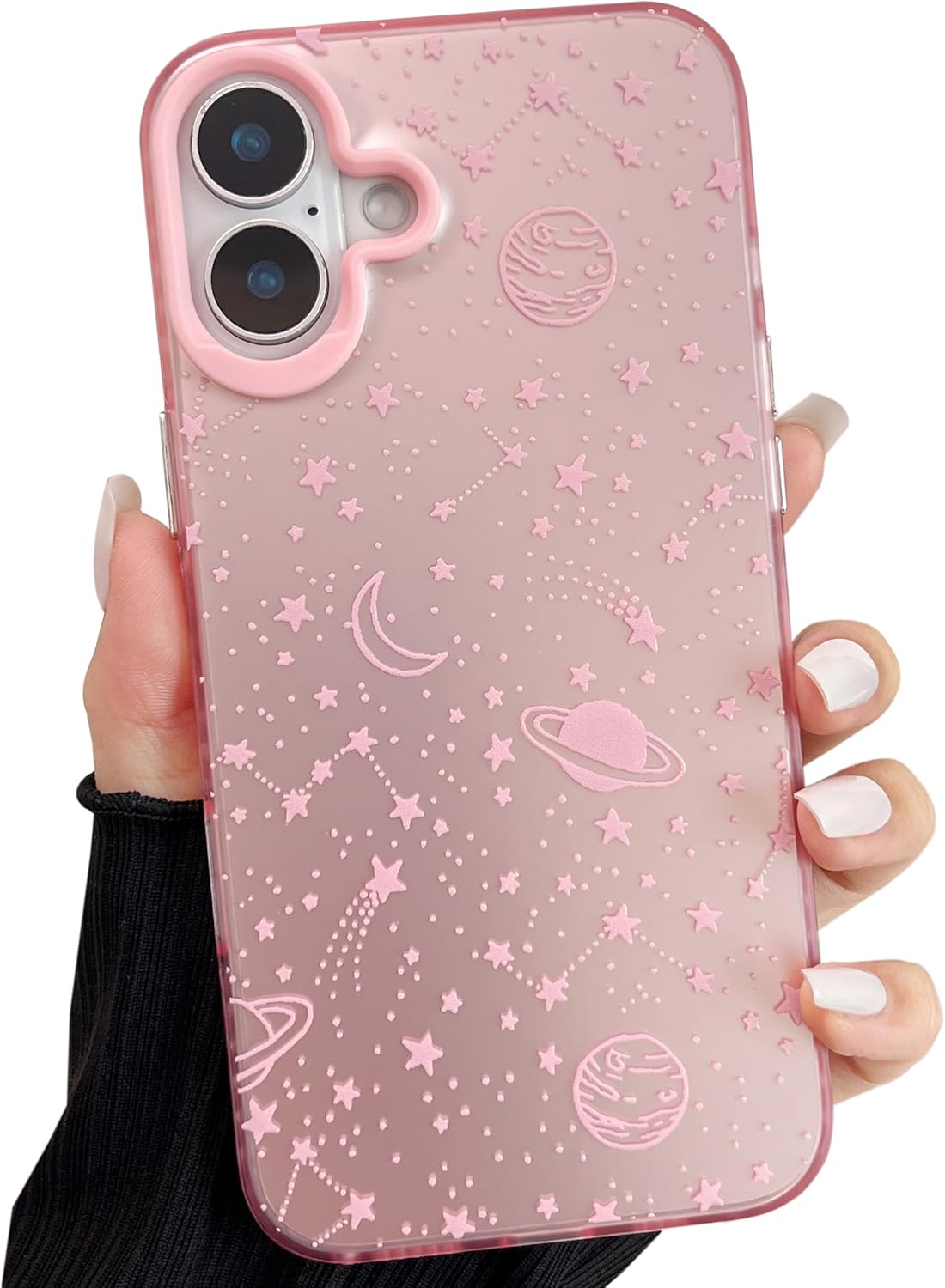 ZTOFERA iPhone 16 Plus (6,7 Zoll) Schutzhülle rosa – Planet-Sternenhimmel Design mit hartem PC-Rücken und TPU-Rahmen