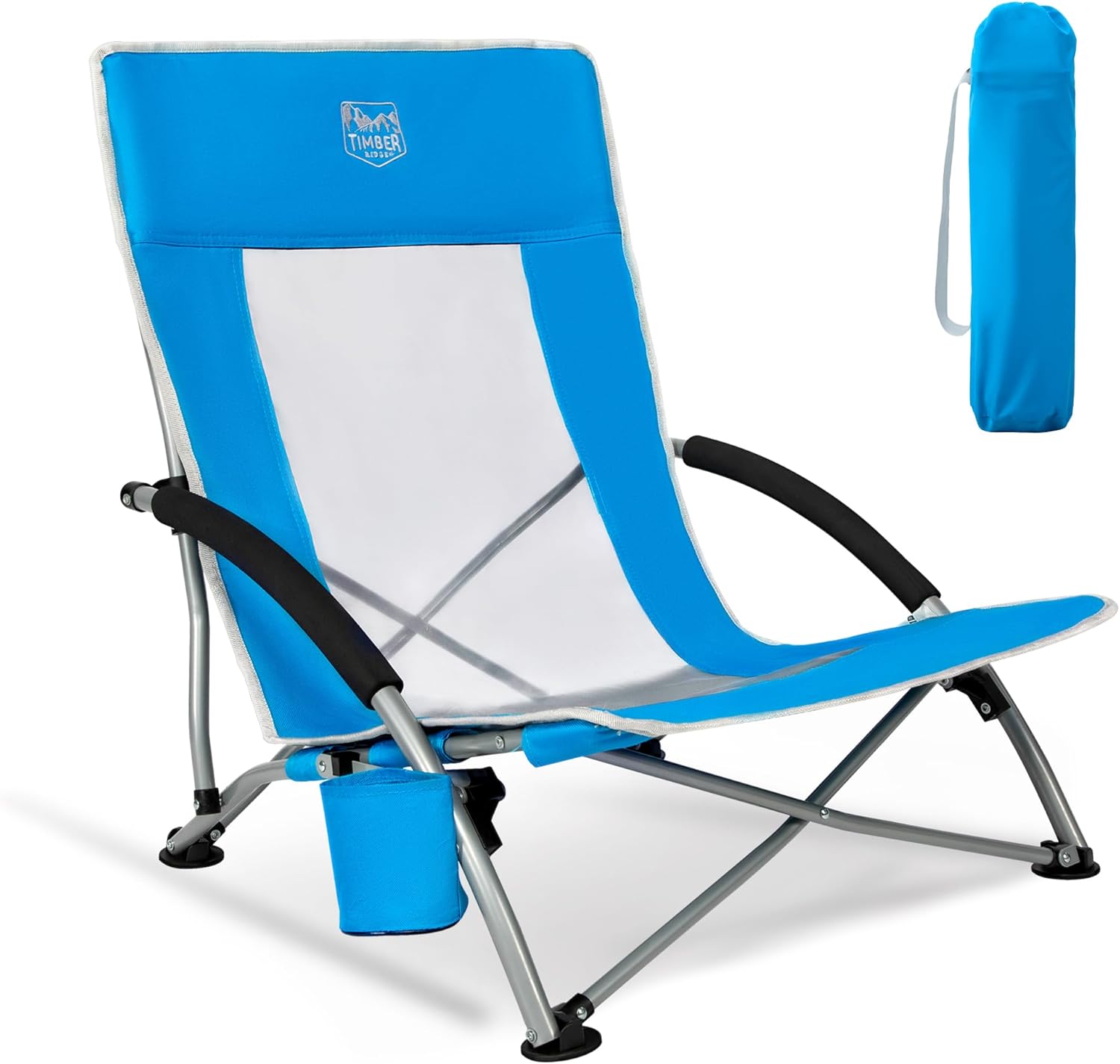 TIMBER RIDGE Strandstuhl klappbar, leicht, mit atmungsaktivem Mesh-Rückenlehne und Getränkehalter