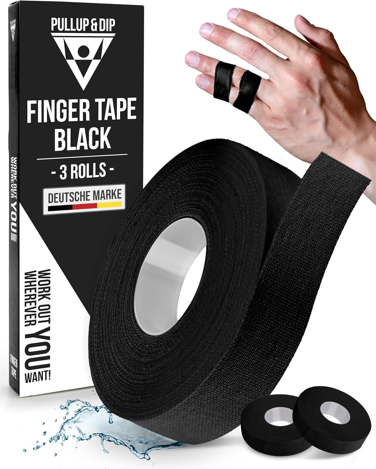 PULLUP & DIP Fingertape extra stark – 3 Rollen (30 m) Finger Tape für Klettern, BJJ, Handball & Torwarttraining