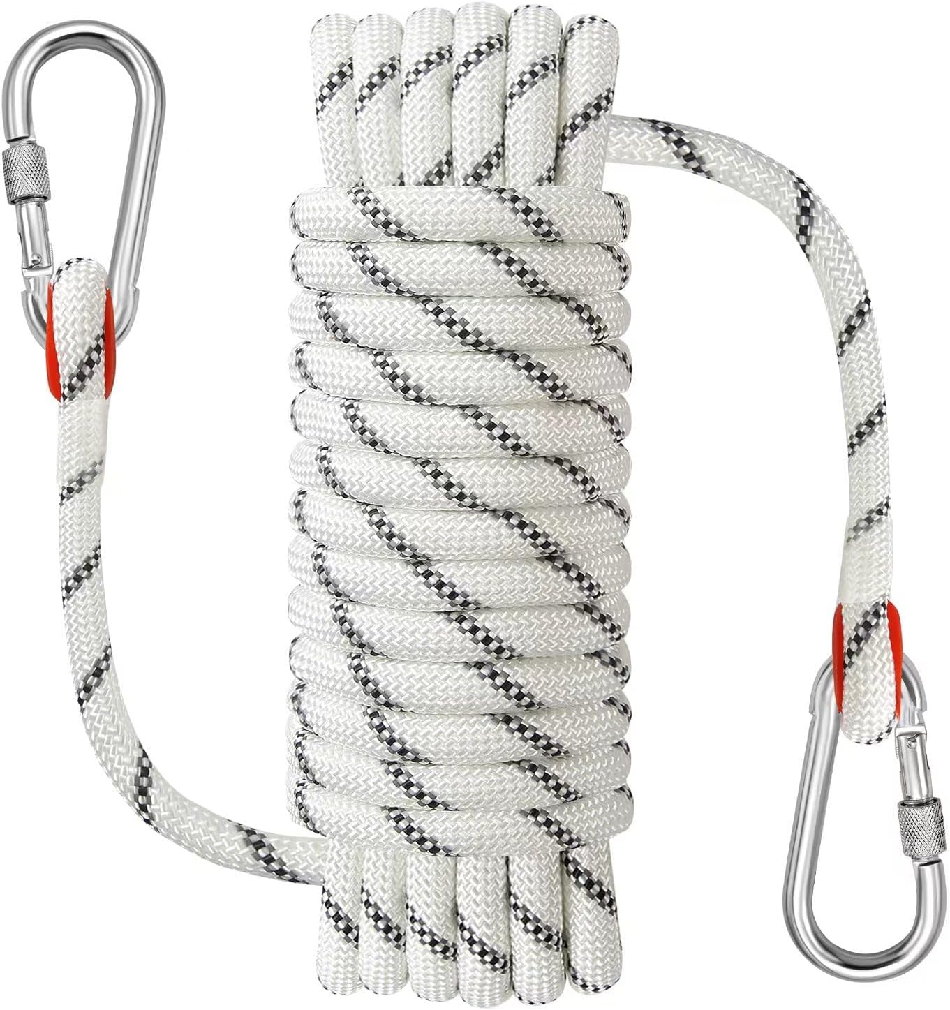 NorthPada statisches Outdoor-Kletterseil 10 mm x 10 m (Nylon/Ployester), orange reflektierend, inkl. Haken & Karabiner