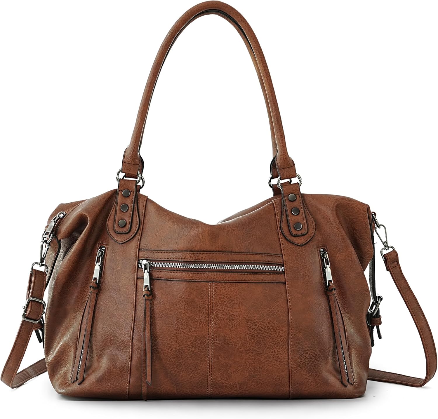 LOVEVOOK Damen Handtasche (Groß) für Laptops bis 17,3 Zoll – Retro-Leder Optik, Braun