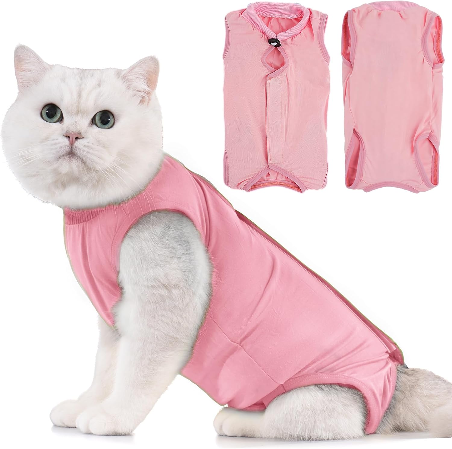Eyein Katzenbody nach OP – atmungsaktiver, dehnbarer Erholungsanzug gegen Lecken & Kratzen (Hellrosa, M)