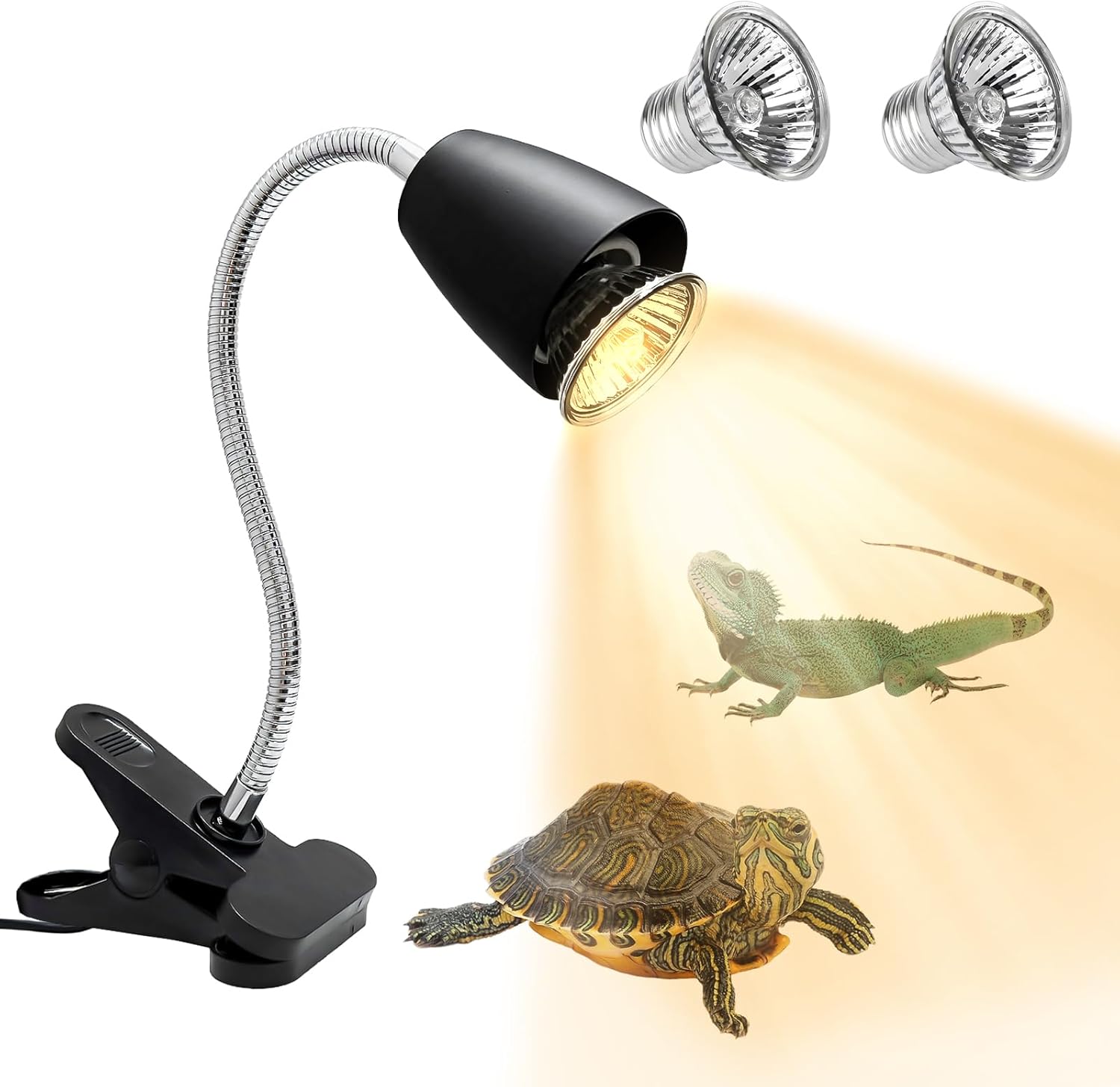 Golgner Schildkröte Wärmelampe – Wärmespotlampe für Reptilien mit 2× 50W UVA+UVB, 360° Clip & dimmbarem Schalter