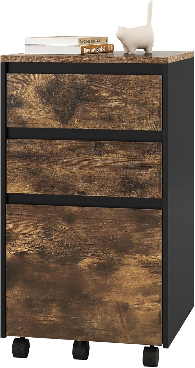 WOLTU Archivador Móvil 3 Cajones con Ruedas, Roble y Negro 🗄️